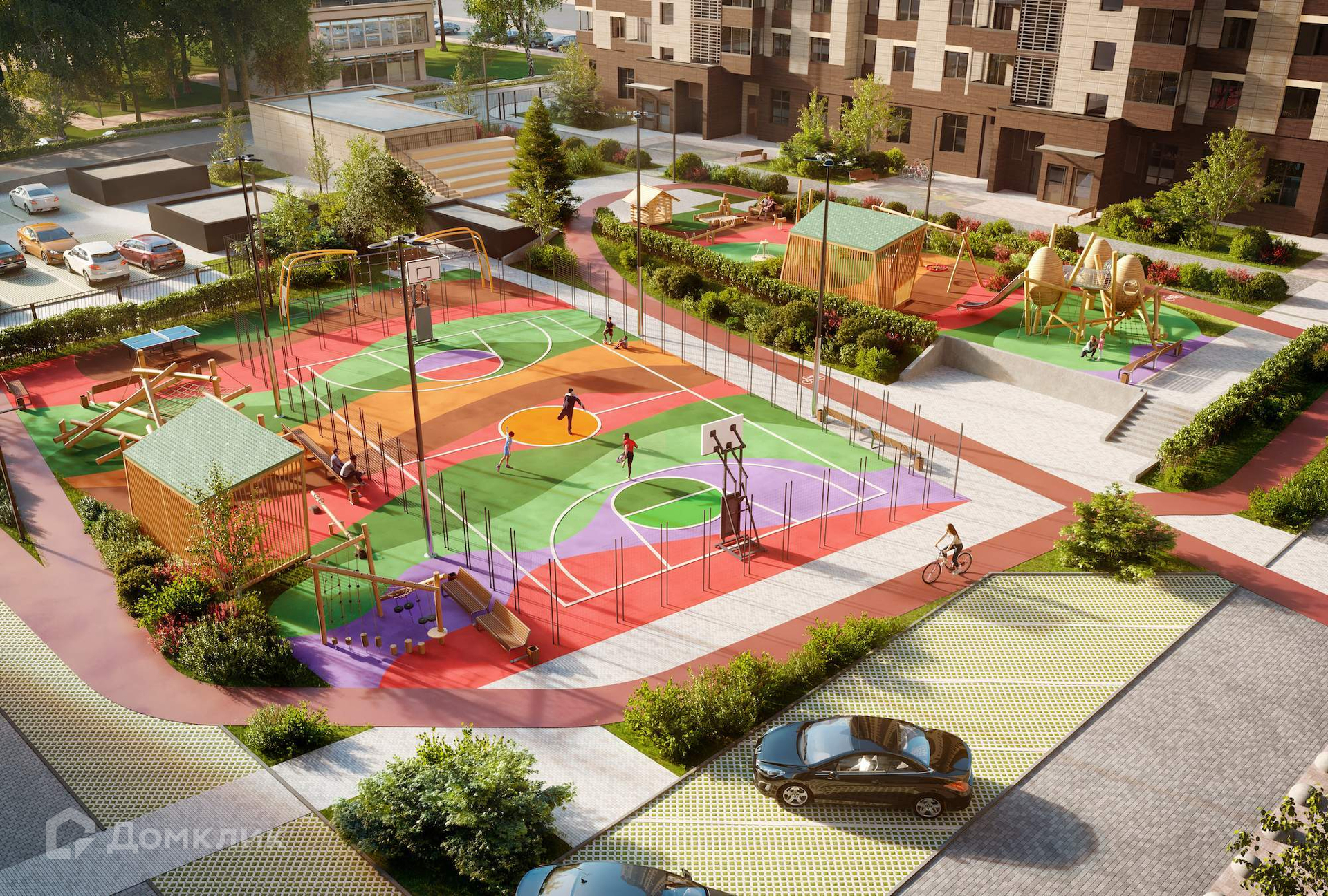 Собраться с соседями для игры в футбол и баскетбол на специальной огороженной площадке, позаниматься спортом на уличных тренажерах, прокатиться по маршруту велотрека, сыграть с другом в настольный теннис или шахматы на свежем воздухе, просто прогуляться с подругой или почитать книгу в тени беседки - все это можно сделать, не выходя за пределы Вашего дома.