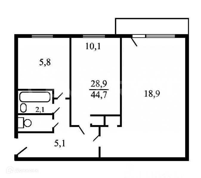 Общая площадь 44.7 м2