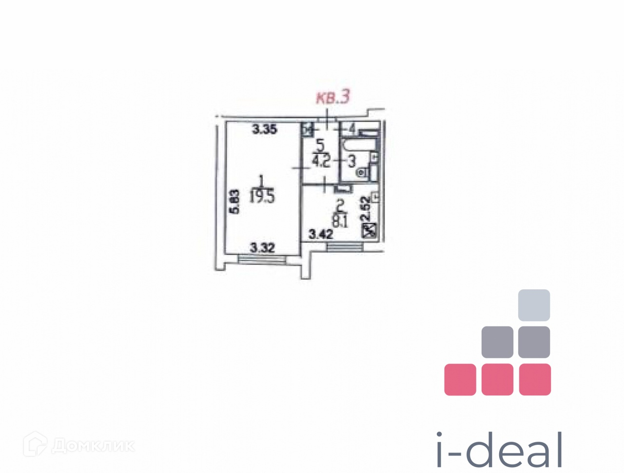 Жилая площадь 19.5 м2