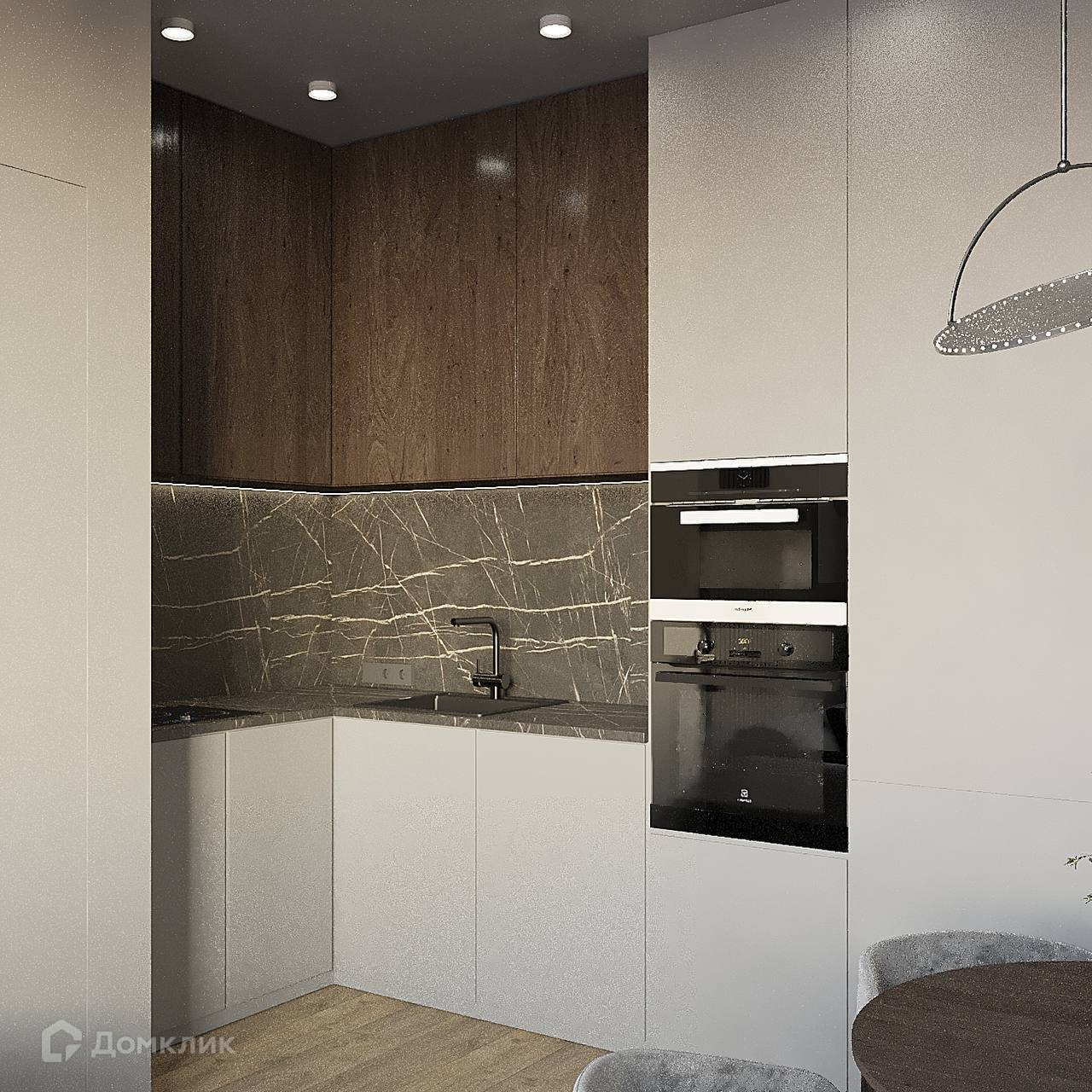 Сантехника Grohe, Kasenye керамогранит Мосплитка. Вся корпусная мебель изготовлена под заказ. В апартаменте дизайнерское освещение.
