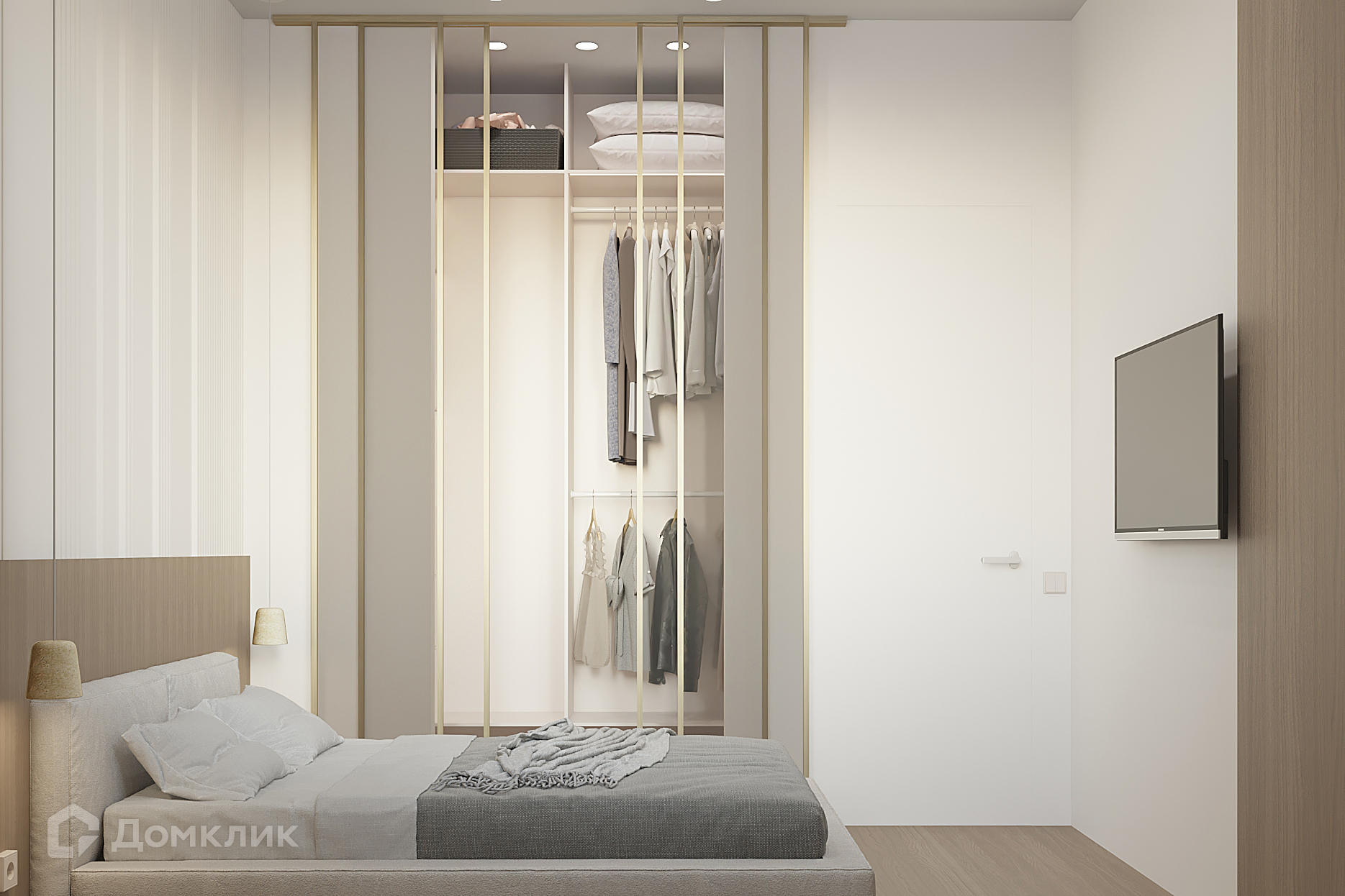 Комната: В комнате предусмотрена отдельная гардеробная комната, а кровать, выполнена по авторскому эскизу дизайнера.