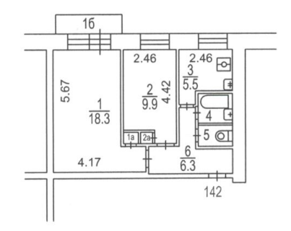 Общая площадь 44.1 м2