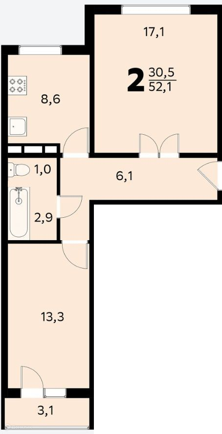 Жилая площадь 30.5 м2