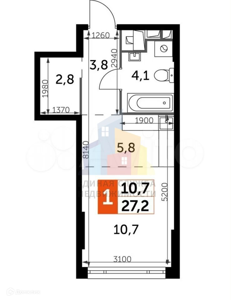 Общая площадь 27 м2