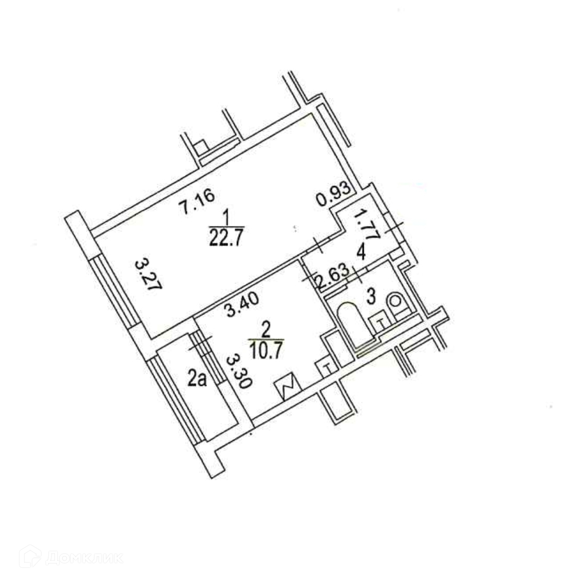 Жилая площадь 22.7 м2