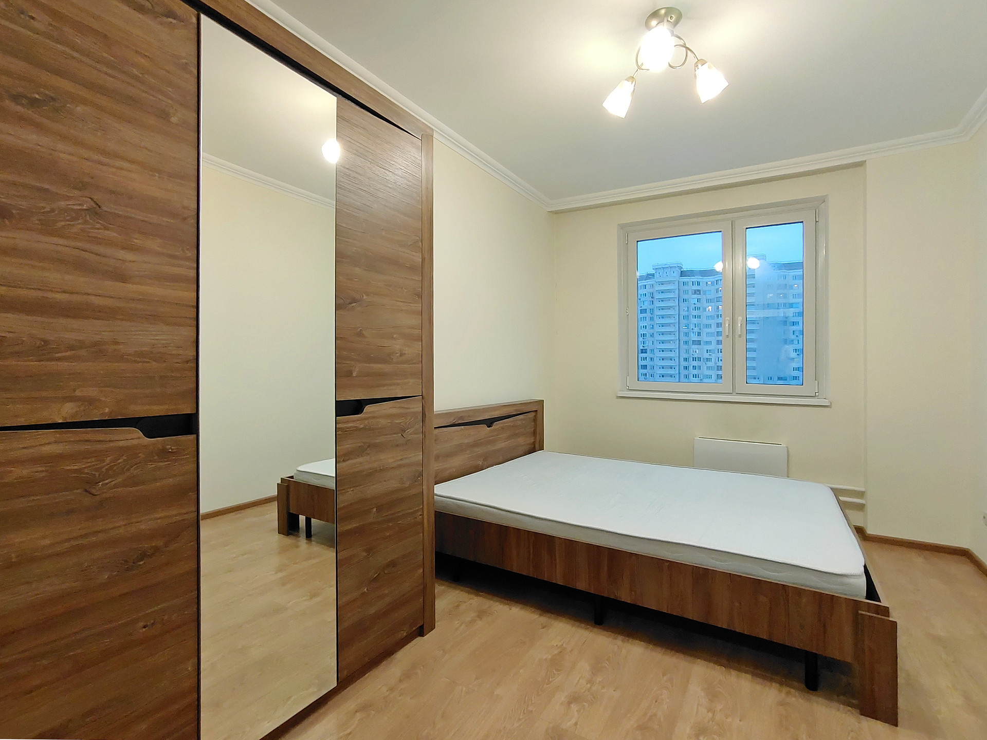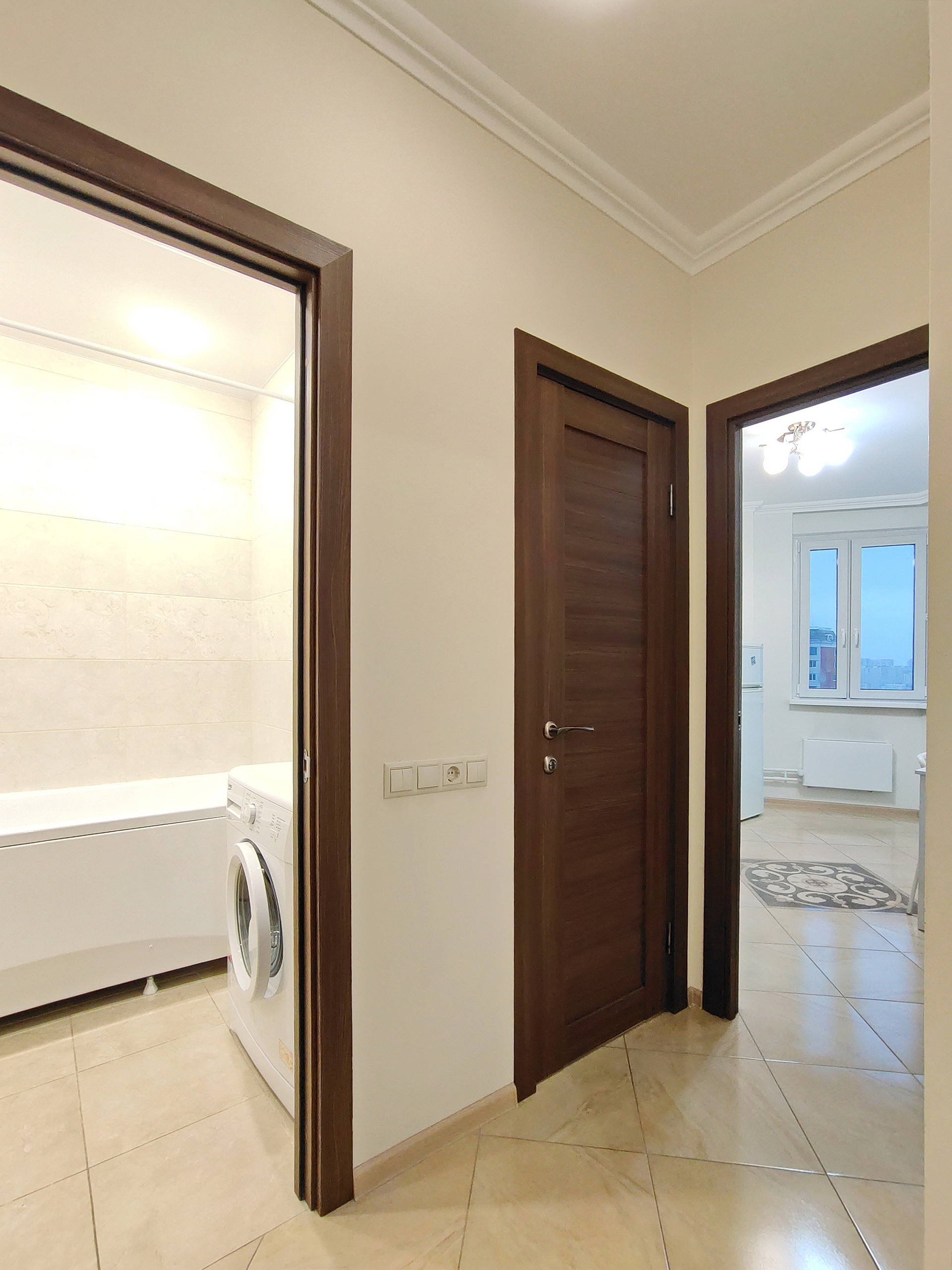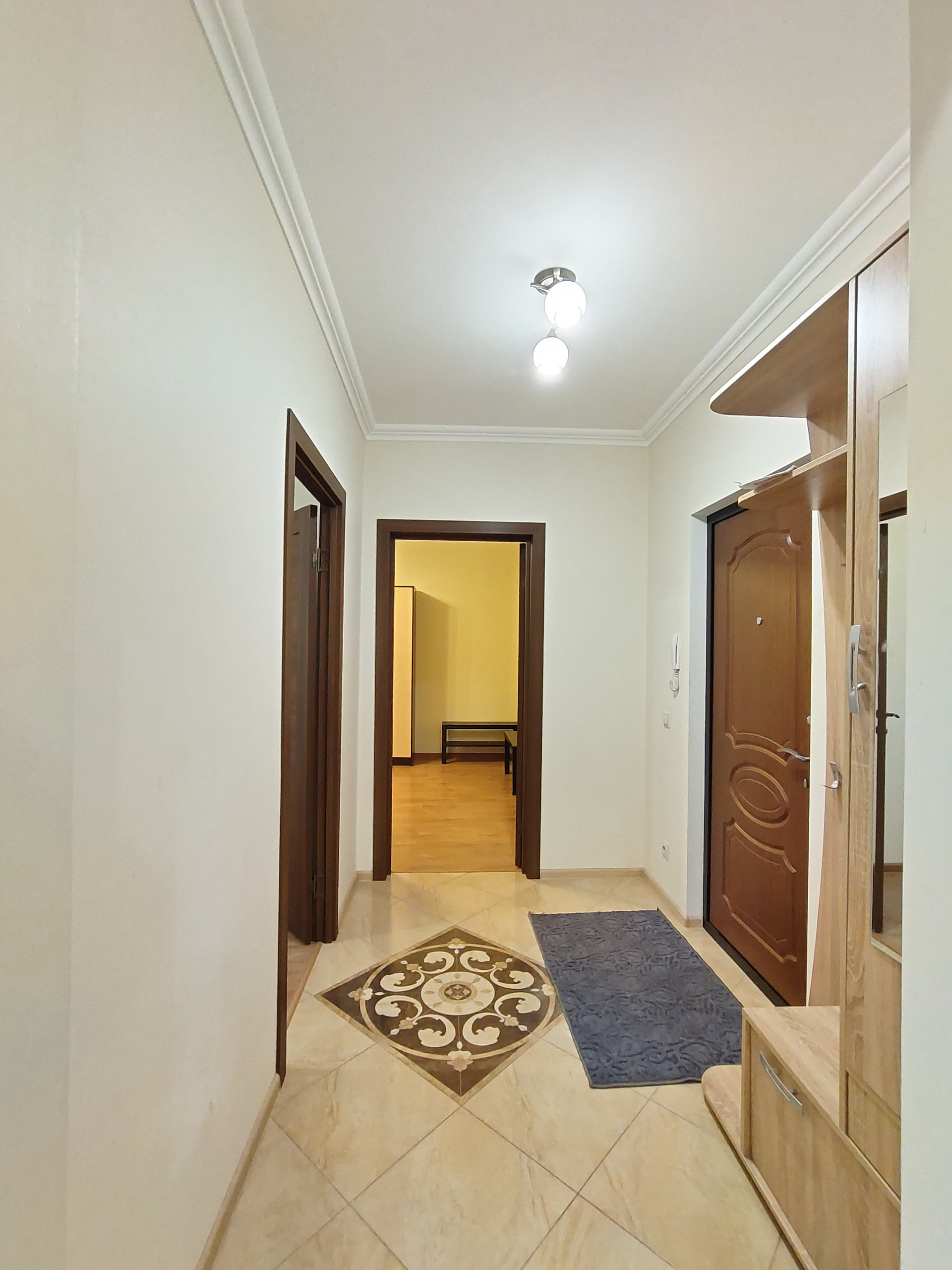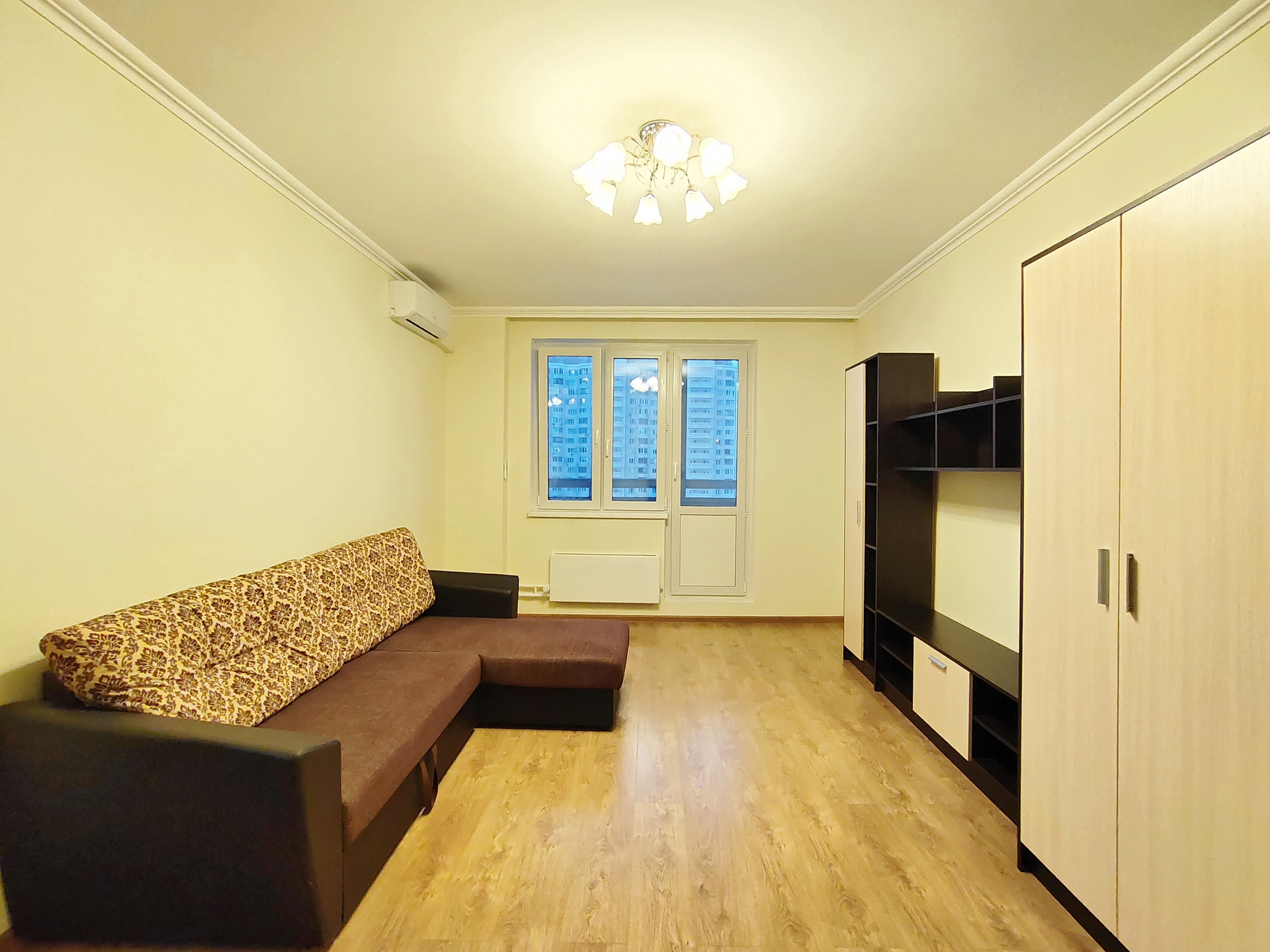 В ванной и туалете установлены натяжные потолки. В комнатах на полу ламинат. На кухне, коридоре, санузле и балконе качественная плитка. Хорошие межкомнатные двери и металлическая входная дверь. Кондиционер в комнате.