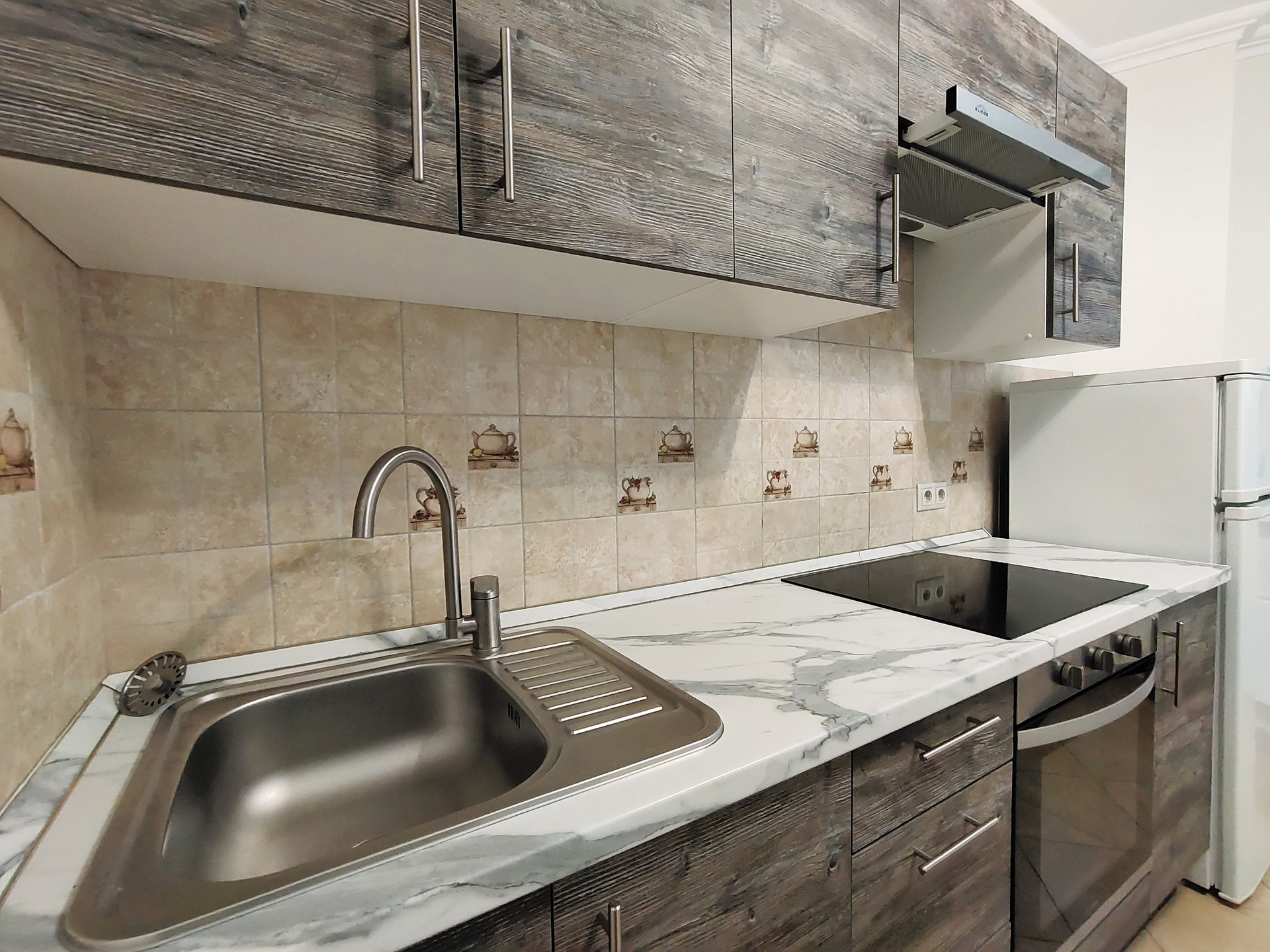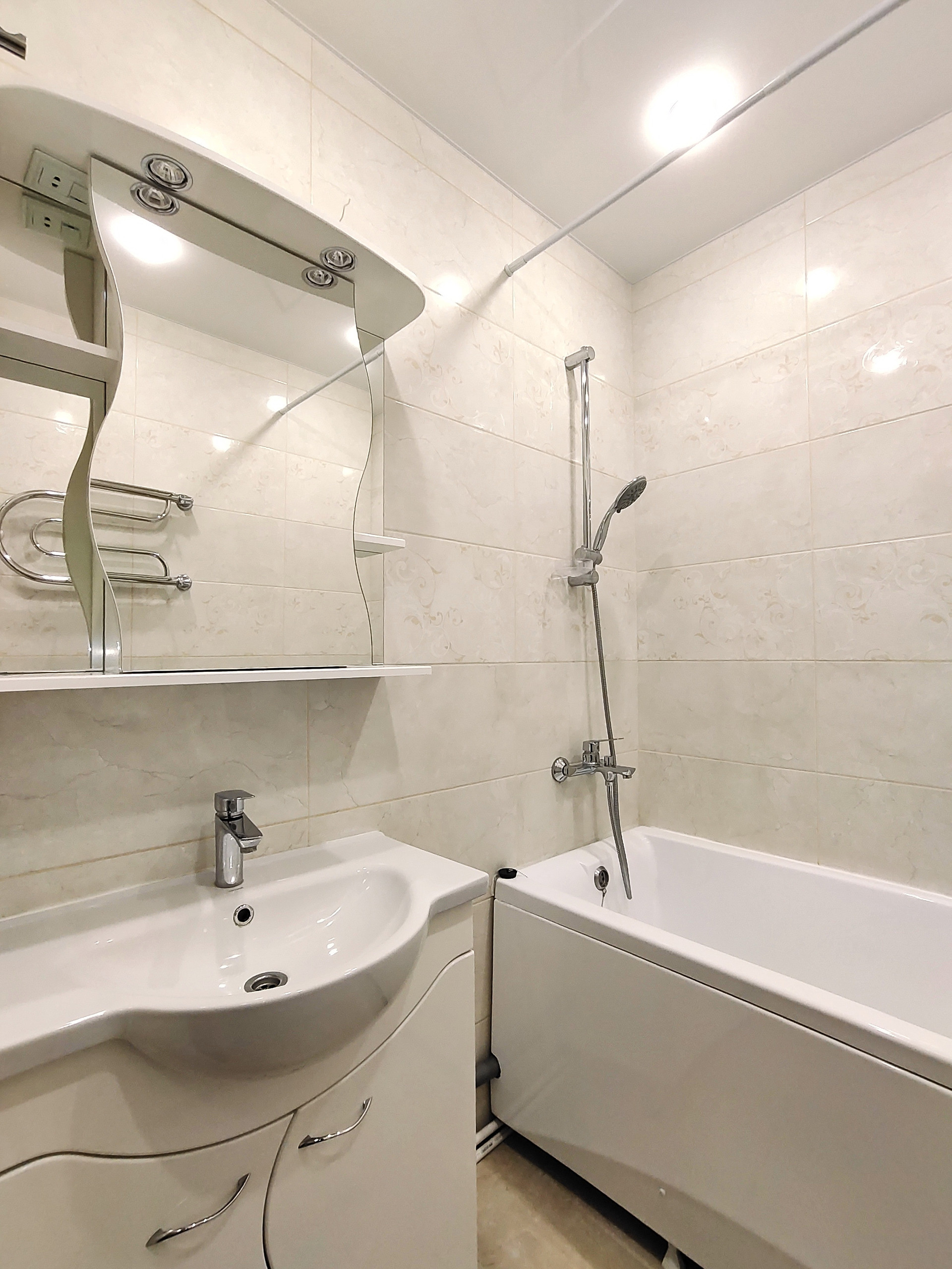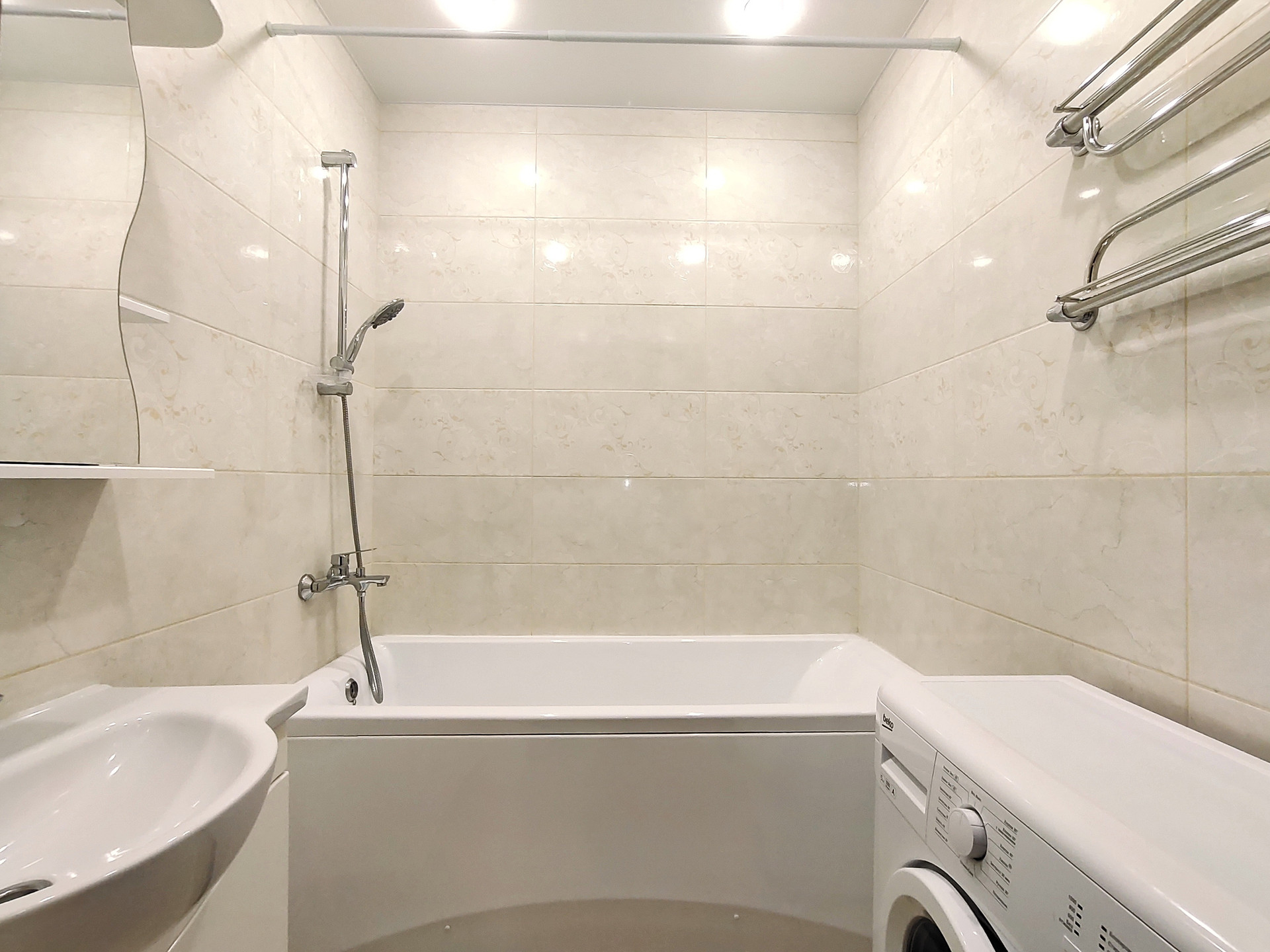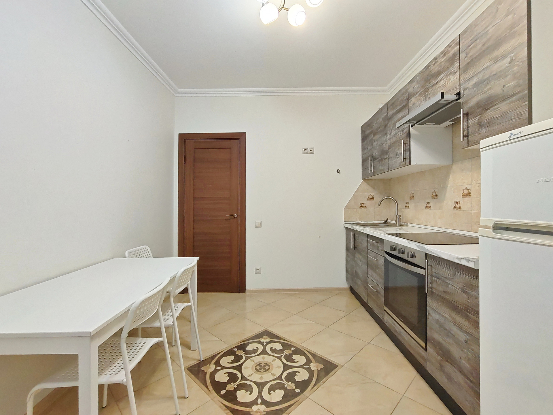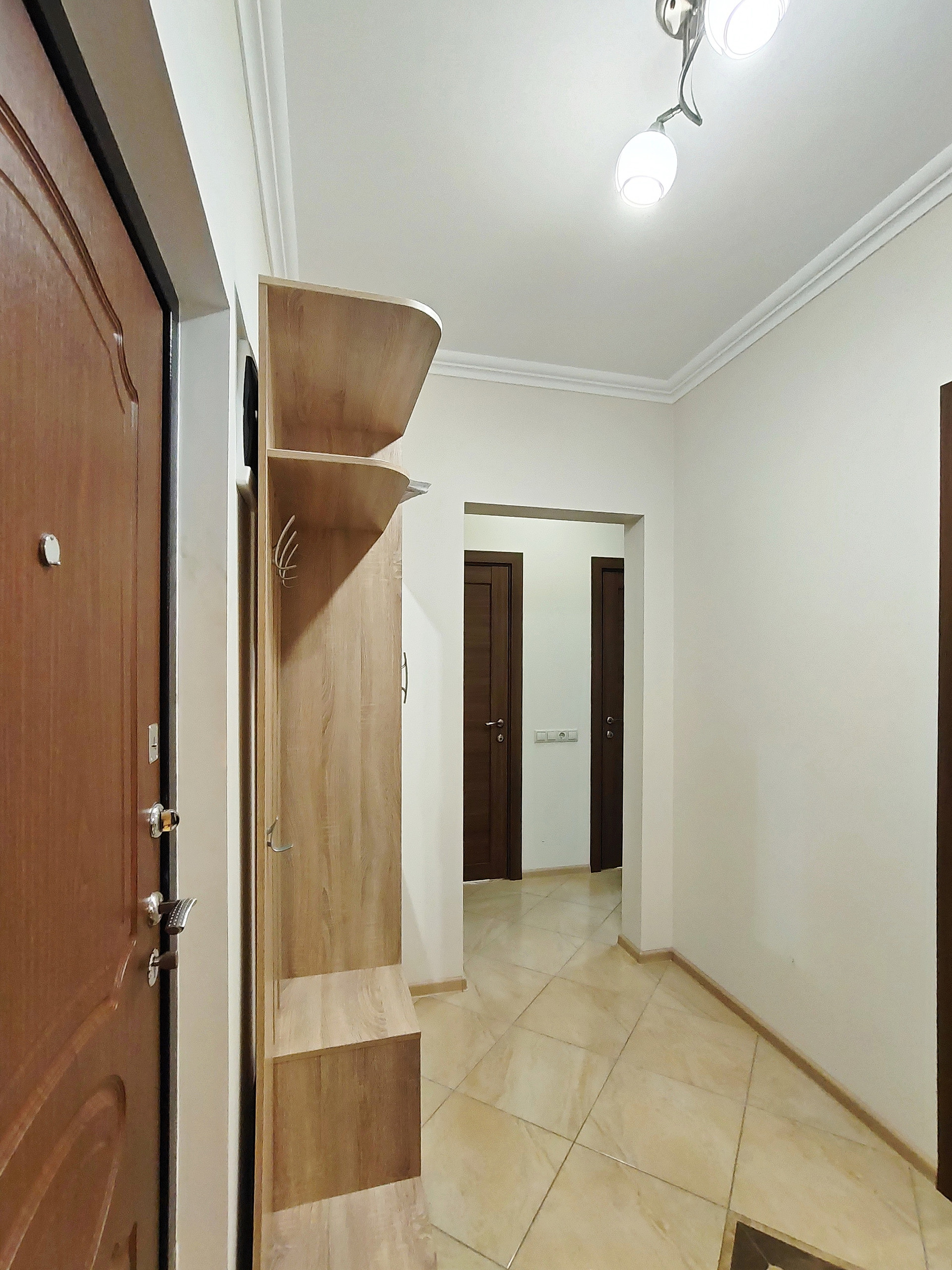 В ванной и туалете установлены натяжные потолки. В комнатах на полу ламинат. На кухне, коридоре, санузле и балконе качественная плитка. Хорошие межкомнатные двери и металлическая входная дверь. Кондиционер в комнате.