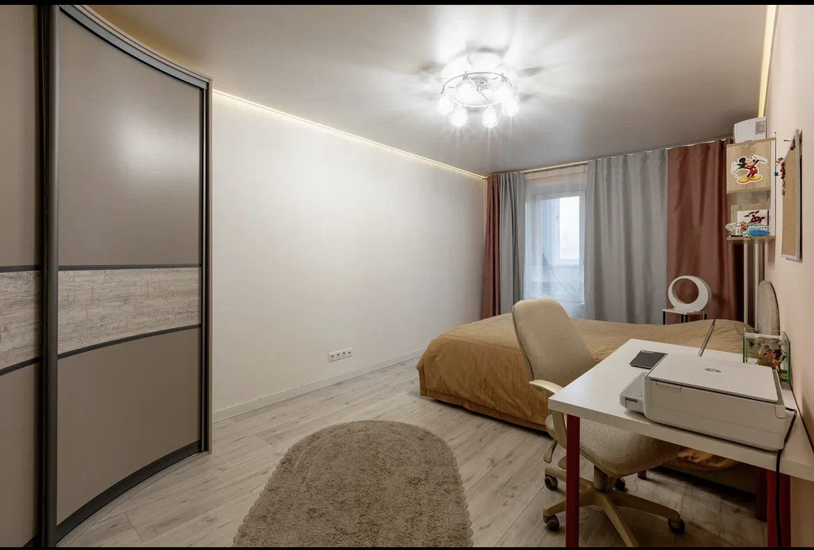 Выполнен отличный дизайнерский ремонт с узаконенной перепланировкой из качественных европейских материалов: замена электропроводки, выравнивание стен, заливка пола, потолки с подсветкой, окна со стеклопакетами с шумо-теплоизоляцией, установлены новые радиаторы отопления, заменены водяные трубы, произведена разводка сантехники, установлен проточный водонагреватель, отремонтирована и застеклена лоджия.  Квартира продаётся с мебелью и техникой, все в идеальном состоянии, можно заехать и жить без дополнительных вложений. Фото соответствуют действительности.