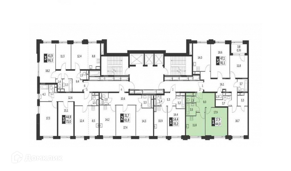 Общая площадь 44.1 м2