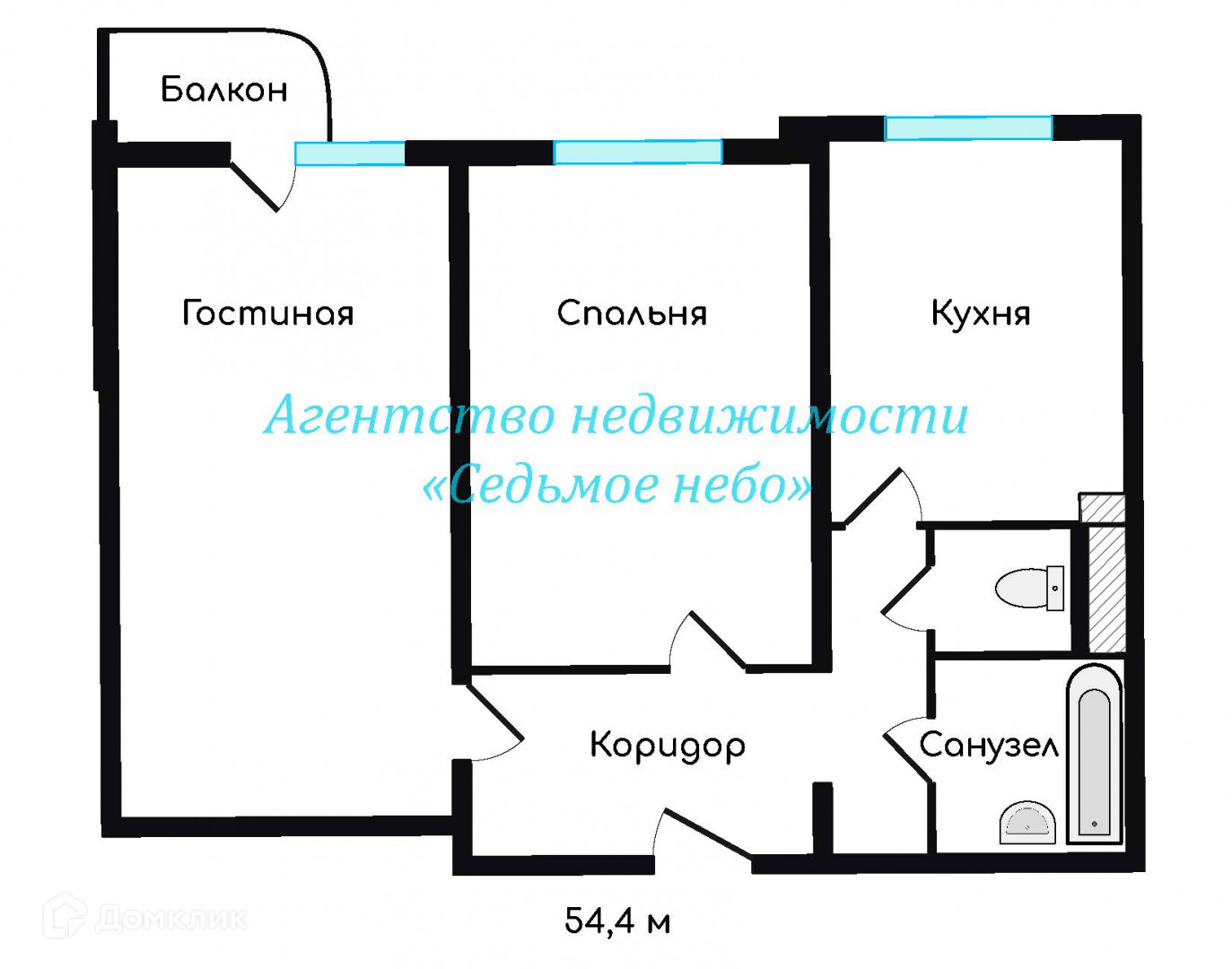 Общая площадь 53.5 м2