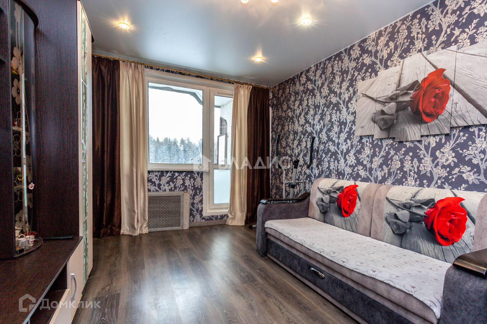- поклеены обои, плитка в санузлах, ламинат в комнатах.
