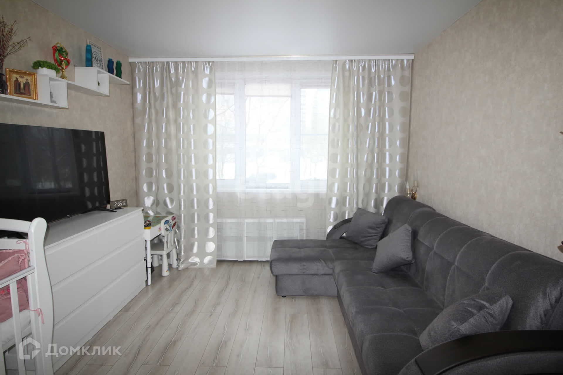 В квартире одна жилая комната и функциональная кухня с новым кухонным гарнитуром и отличной бытовой техникой. Санузел в квартире совмещенный.