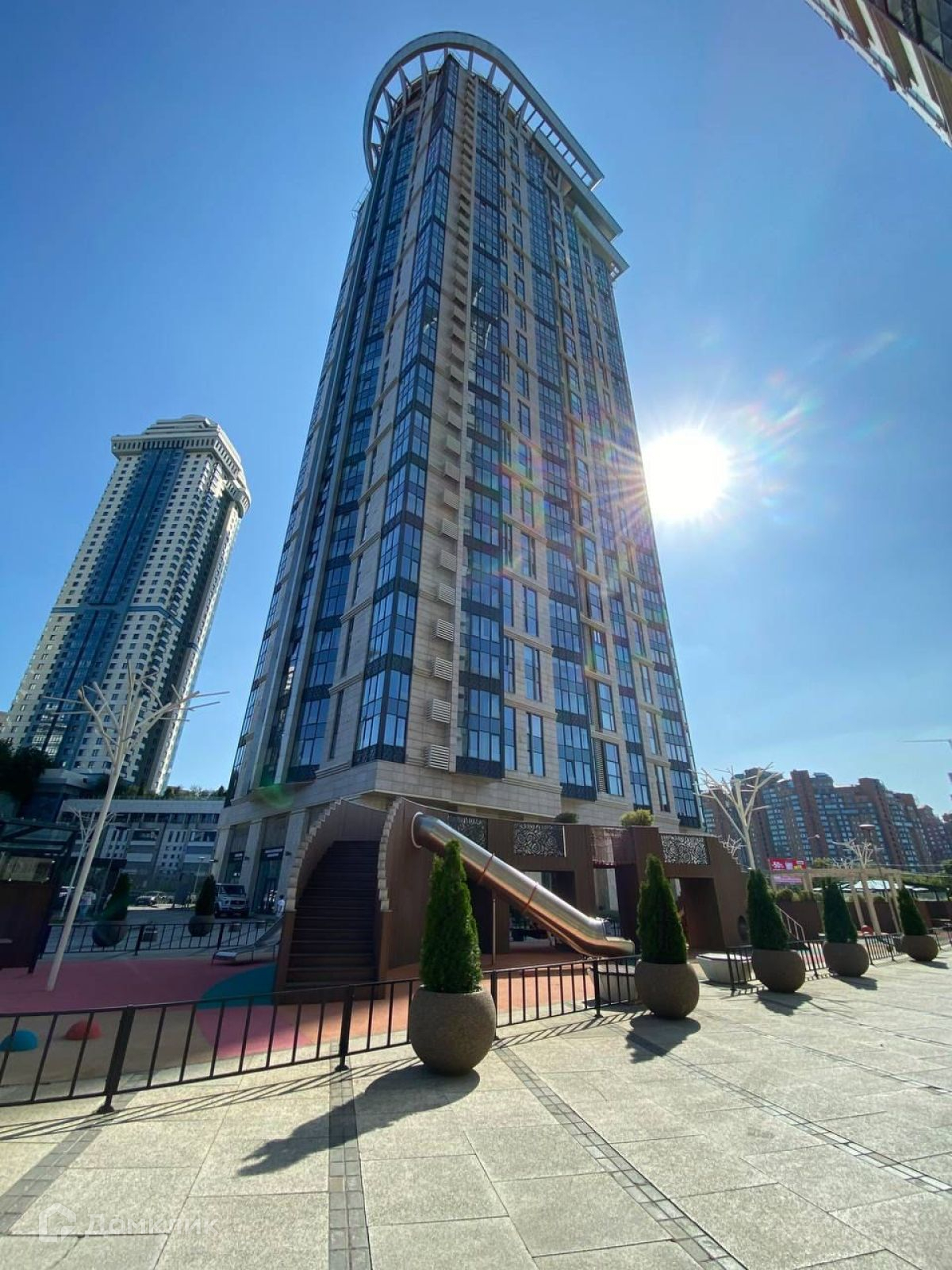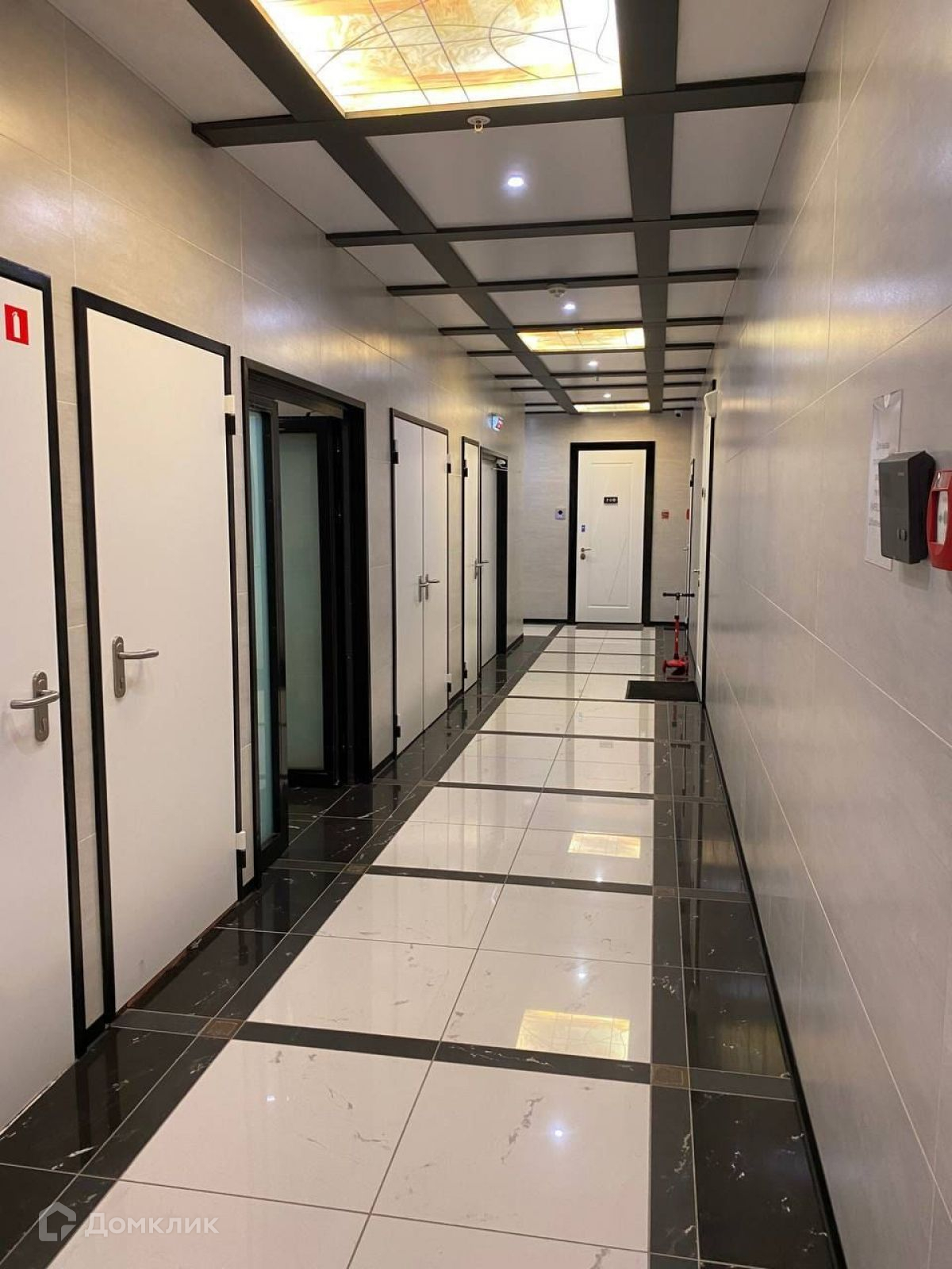 Дизайнерское лобби ЖК оформлено натуральным мрамором, кожаной мебелью, а также эффектными витражами и люстрами от венецианских мастеров-стеклодувов с острова Мурано.