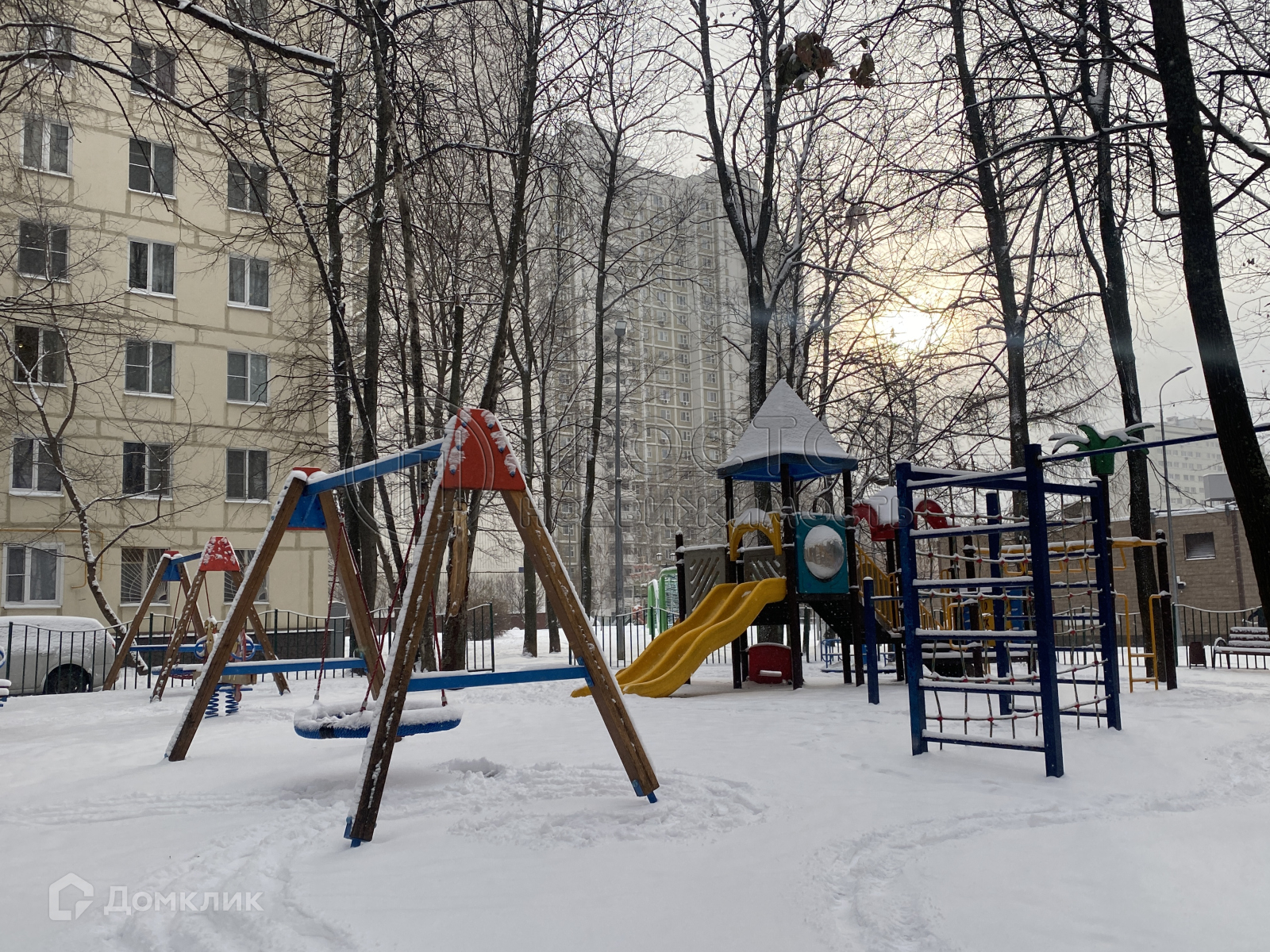 Рядом – несколько ультра-современных спортивных площадок со множеством новых тренажеров.