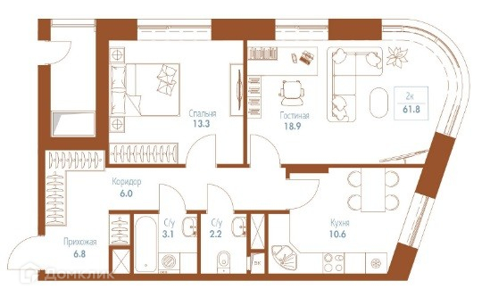 Общая площадь 55 м2