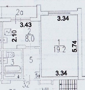 Жилая площадь 19.2 м2