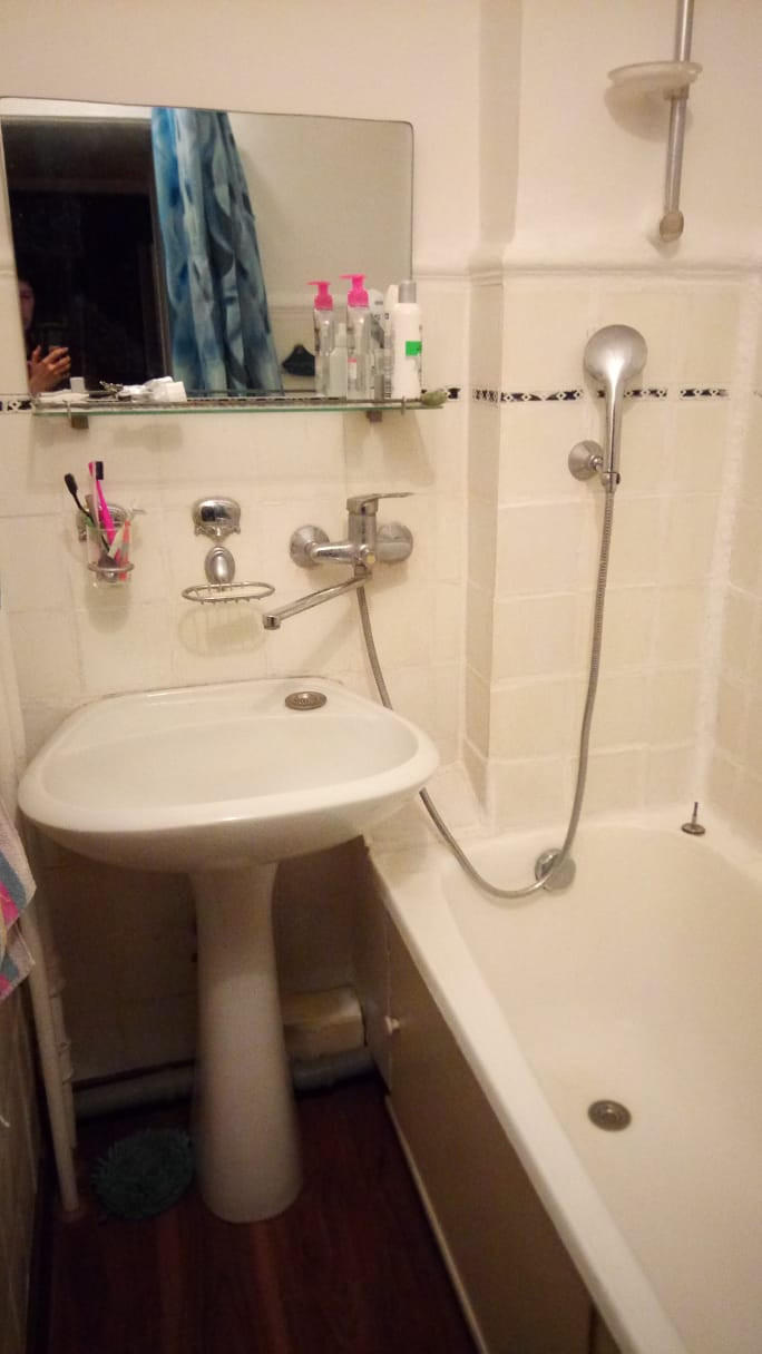 Раздельный санузел. На полу уложена новая кварцвиниловая плитка премиум класса с высокой водостойкостью и прочностью.