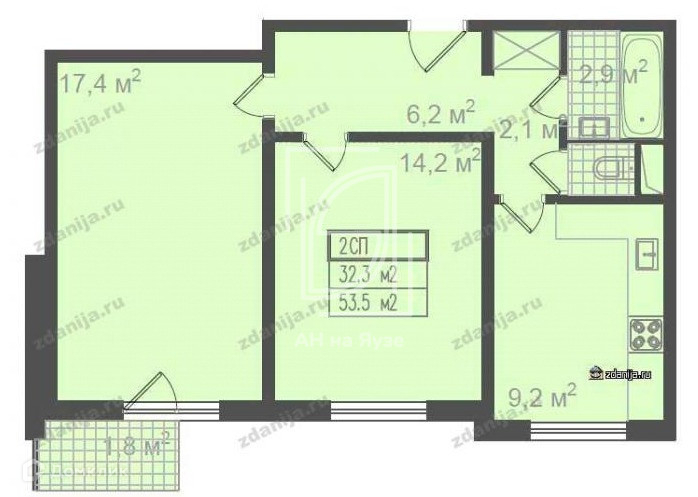 Общая площадь 54 м2