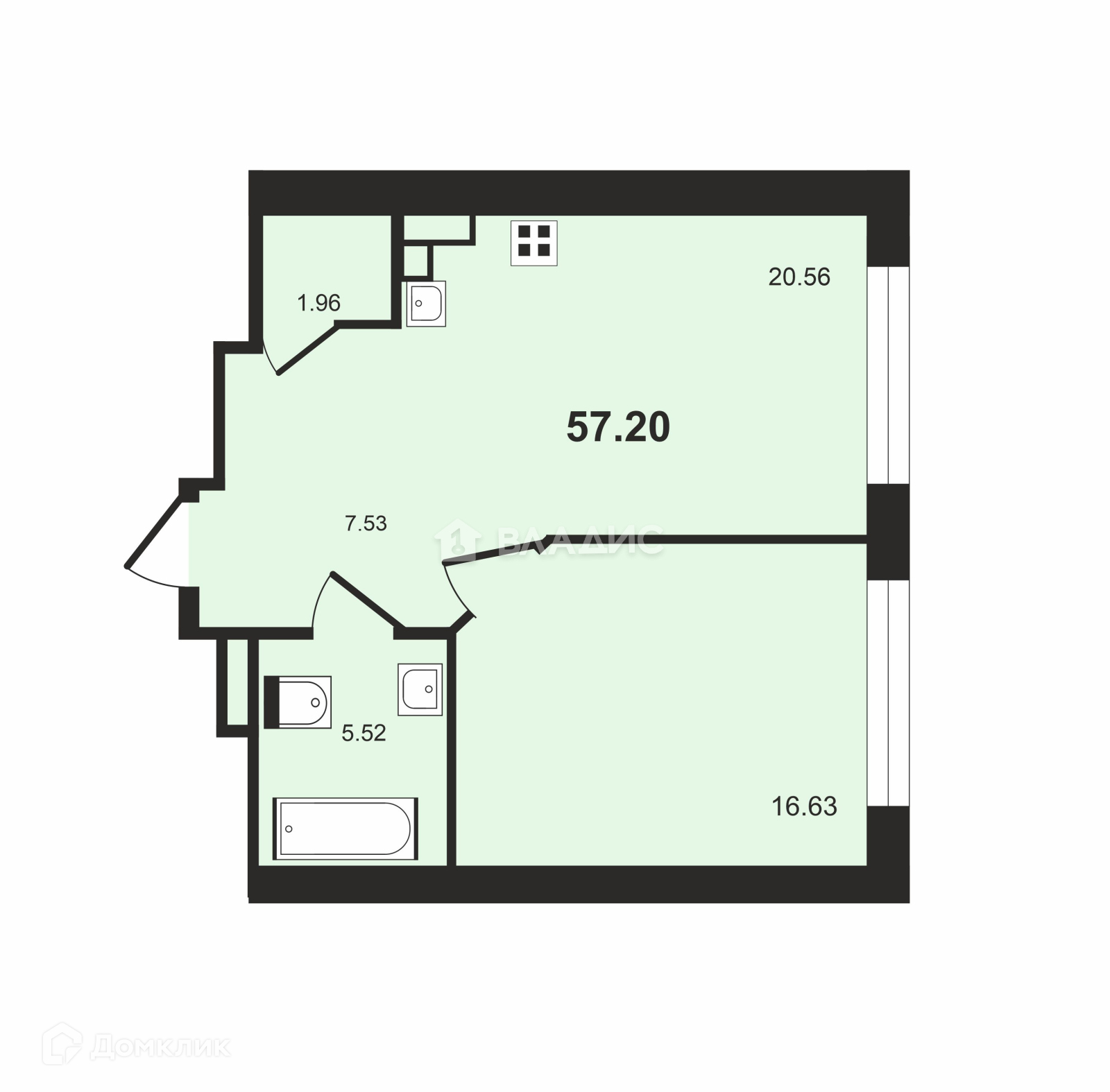 Общая площадь 52.2 м2