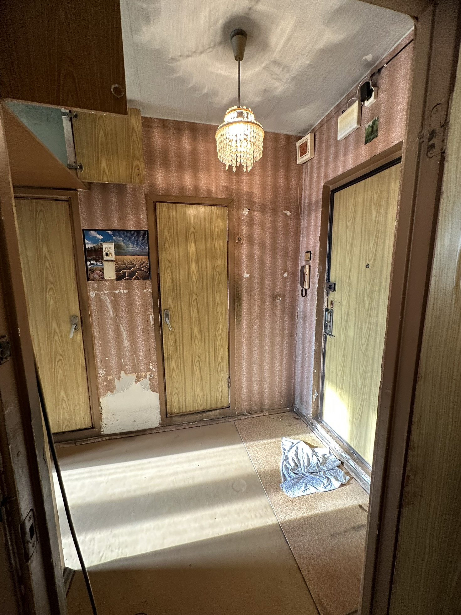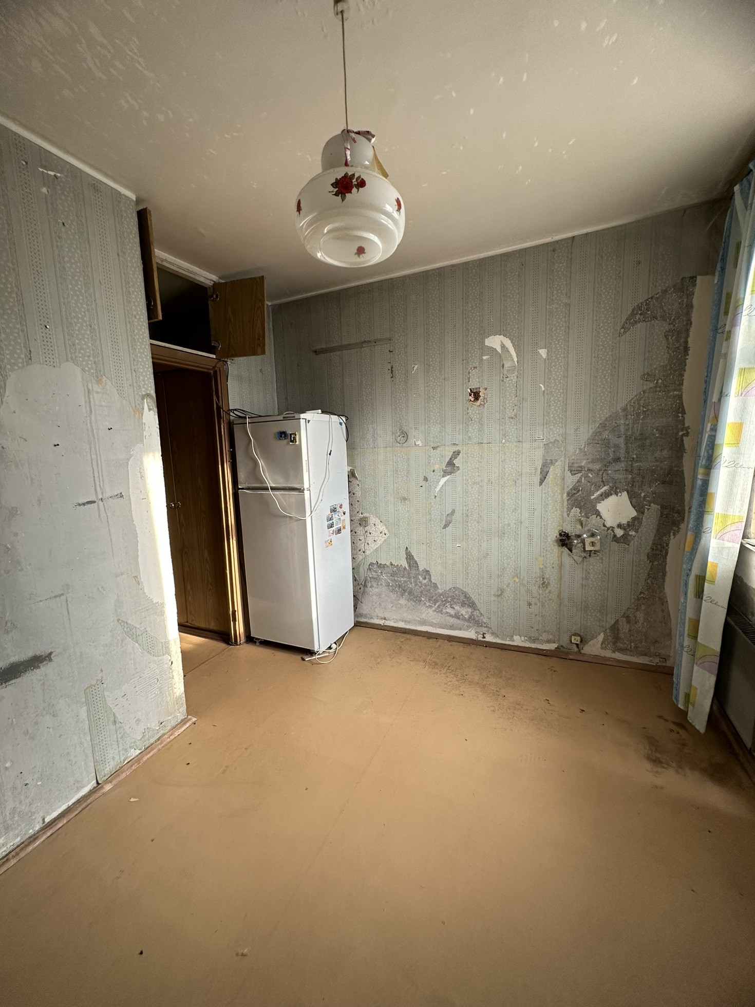 Свободная продажа, прописанных нет. Состояние под ремонт, раздельный санузел, балкон. лестничная площадка на 4 квартиры. Дом стоит внутри двора.