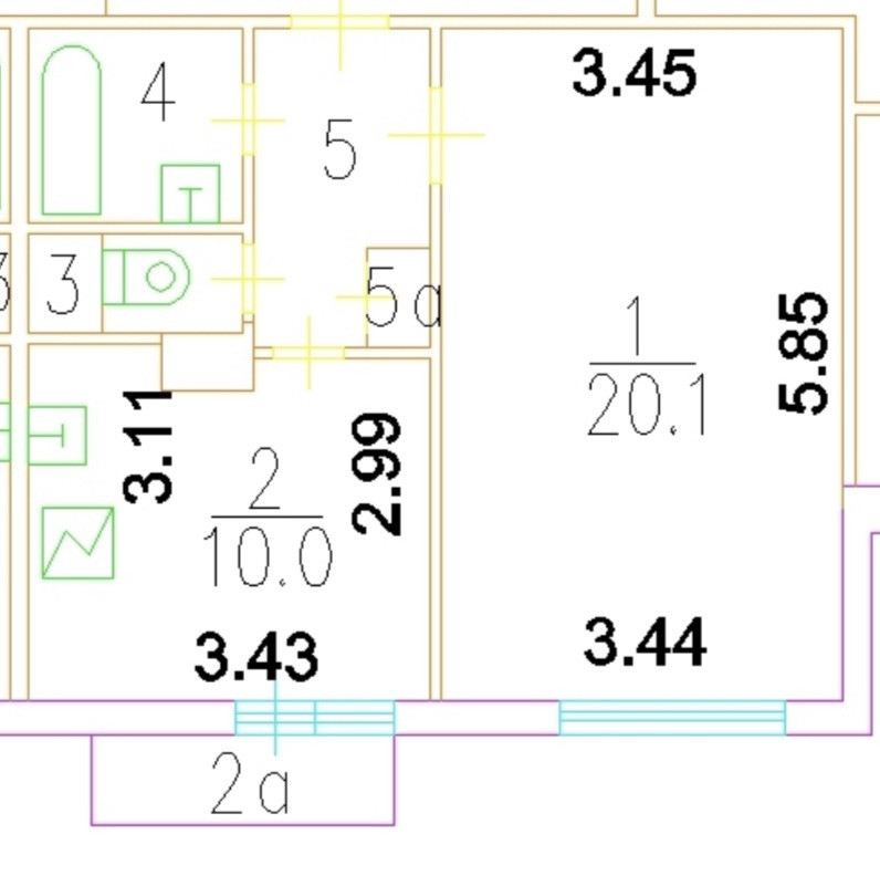 Общая площадь 38.5 м2