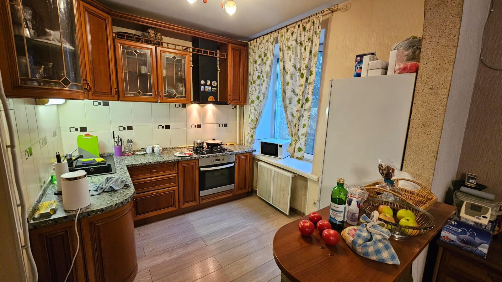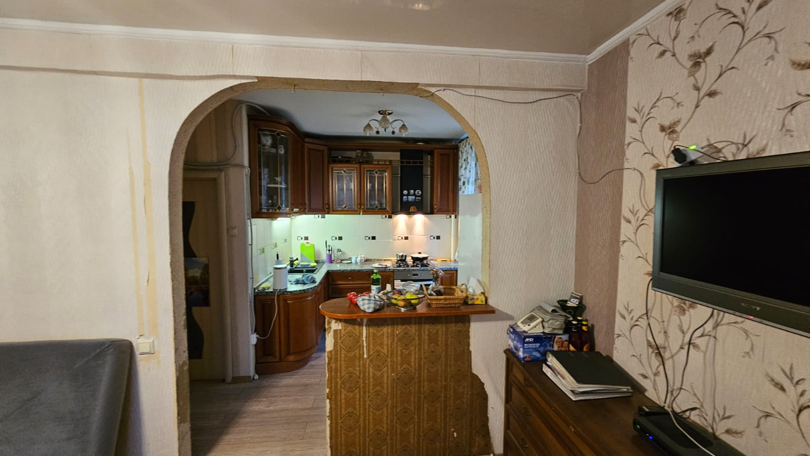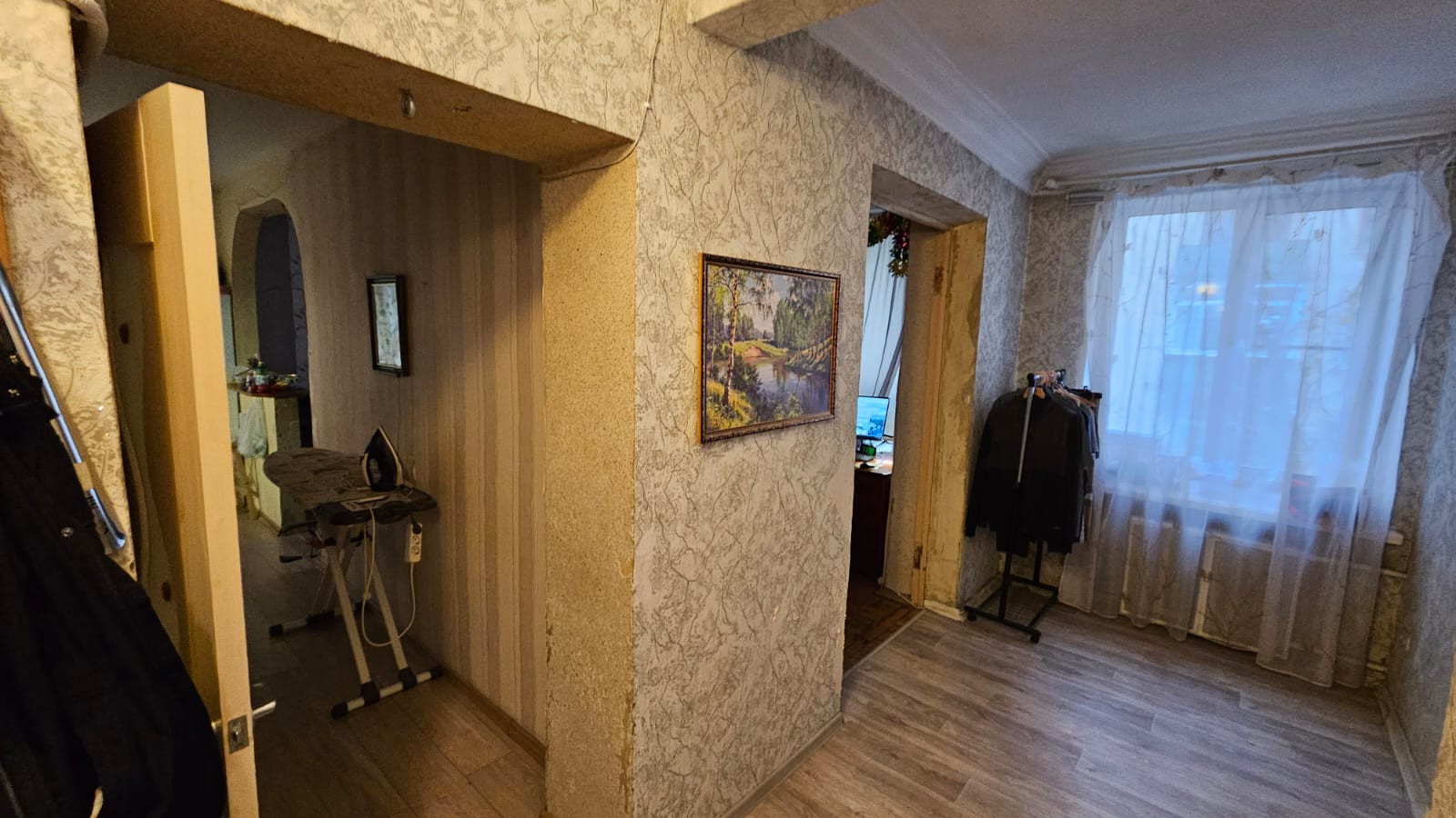 На данный момент в квартире 2 просторные спальни и кухня-гостиная,  которую при минимальных затратах можно изолировать.