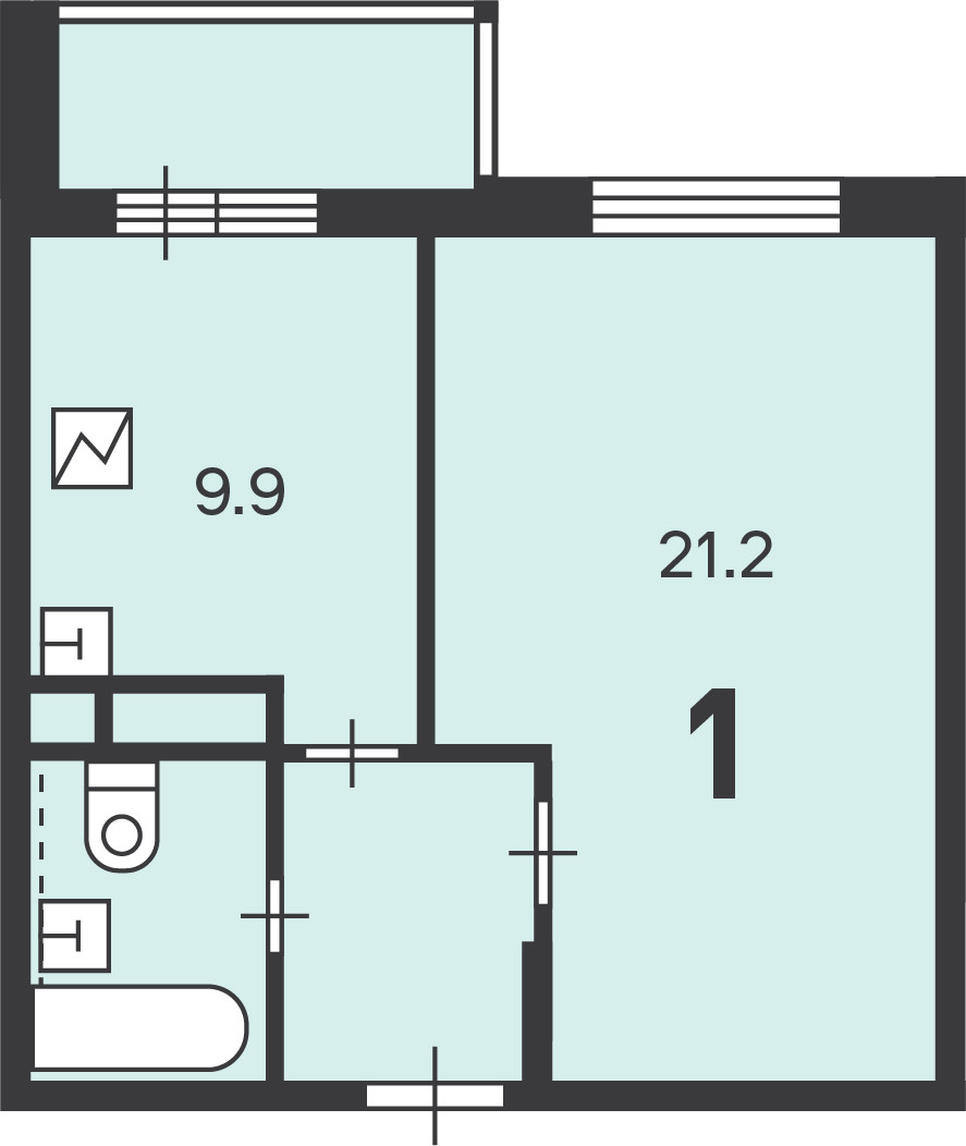 Балкон, лоджия 1 балкон