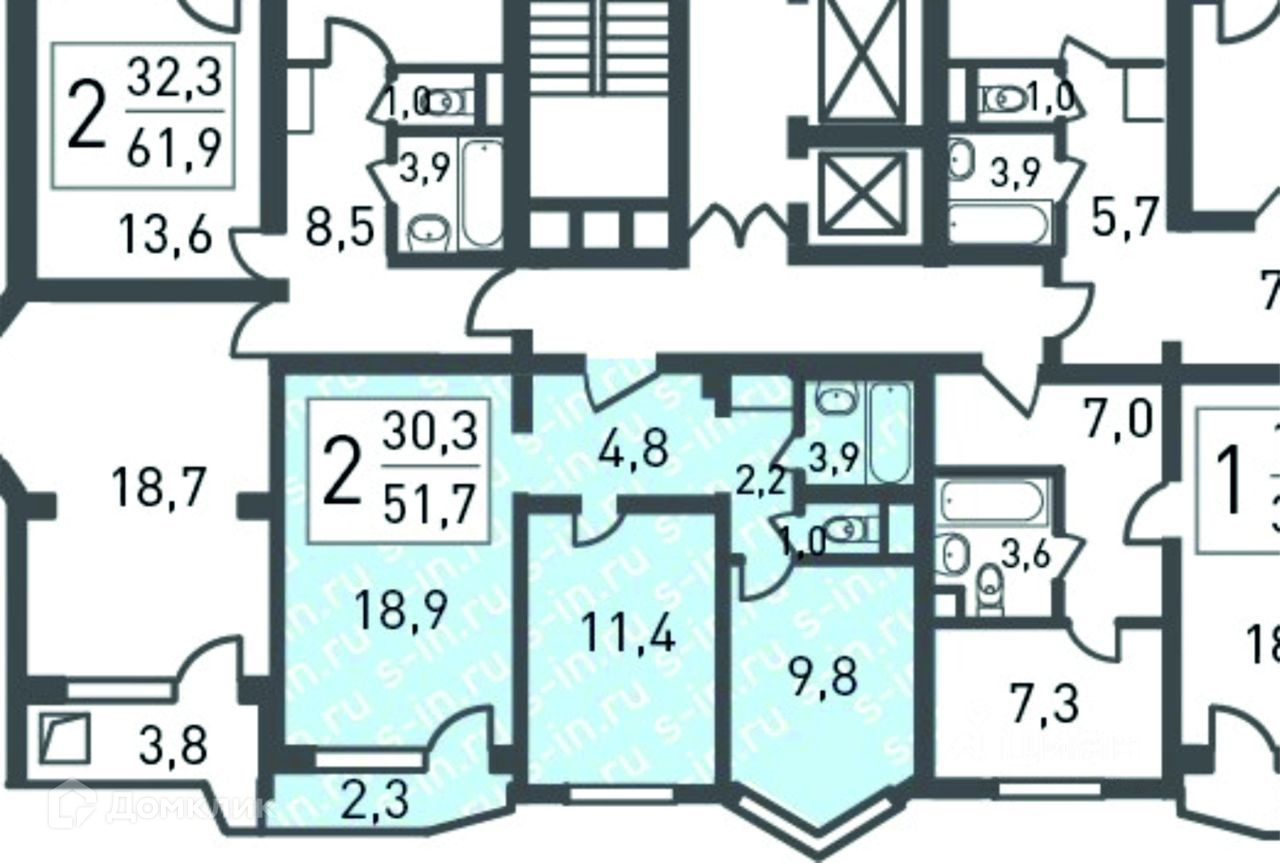 Общая площадь 52 м2