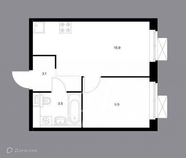 2-комнатная квартира, 32 м2, этаж 6 / 25, на продажу в Москве, Кольская улица, 8к2