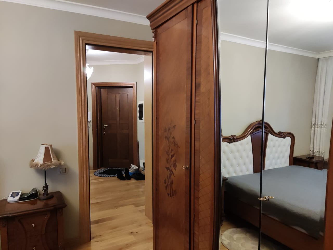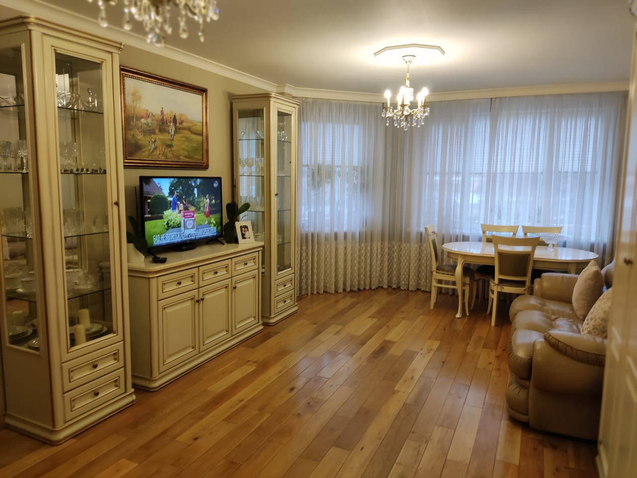 В квартире выполнен дизайнерский ремонт. Полы, дорогой, качественный паркет. Лоджия застекленная (утепленная). Санузел большой. Прихожая просторная.