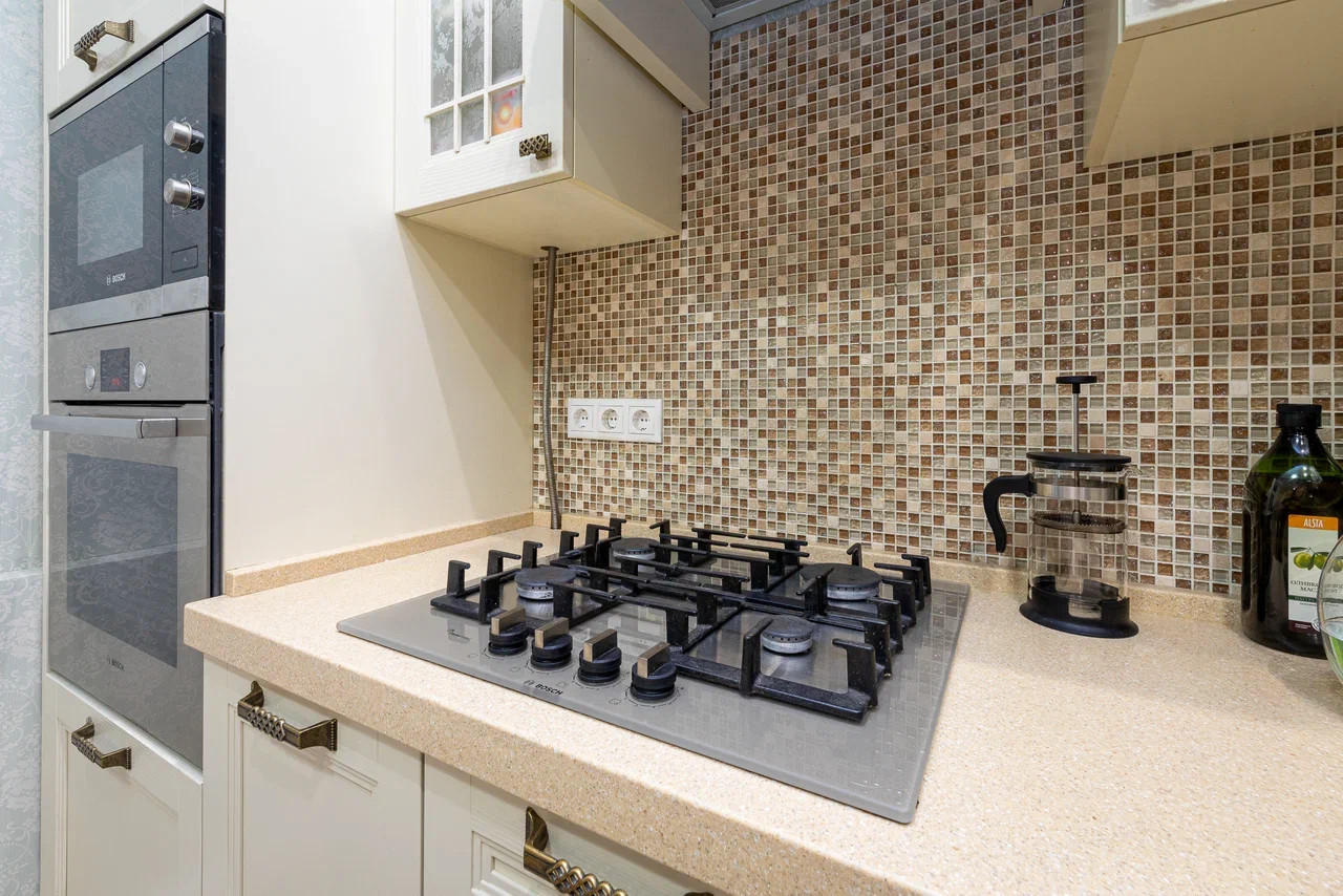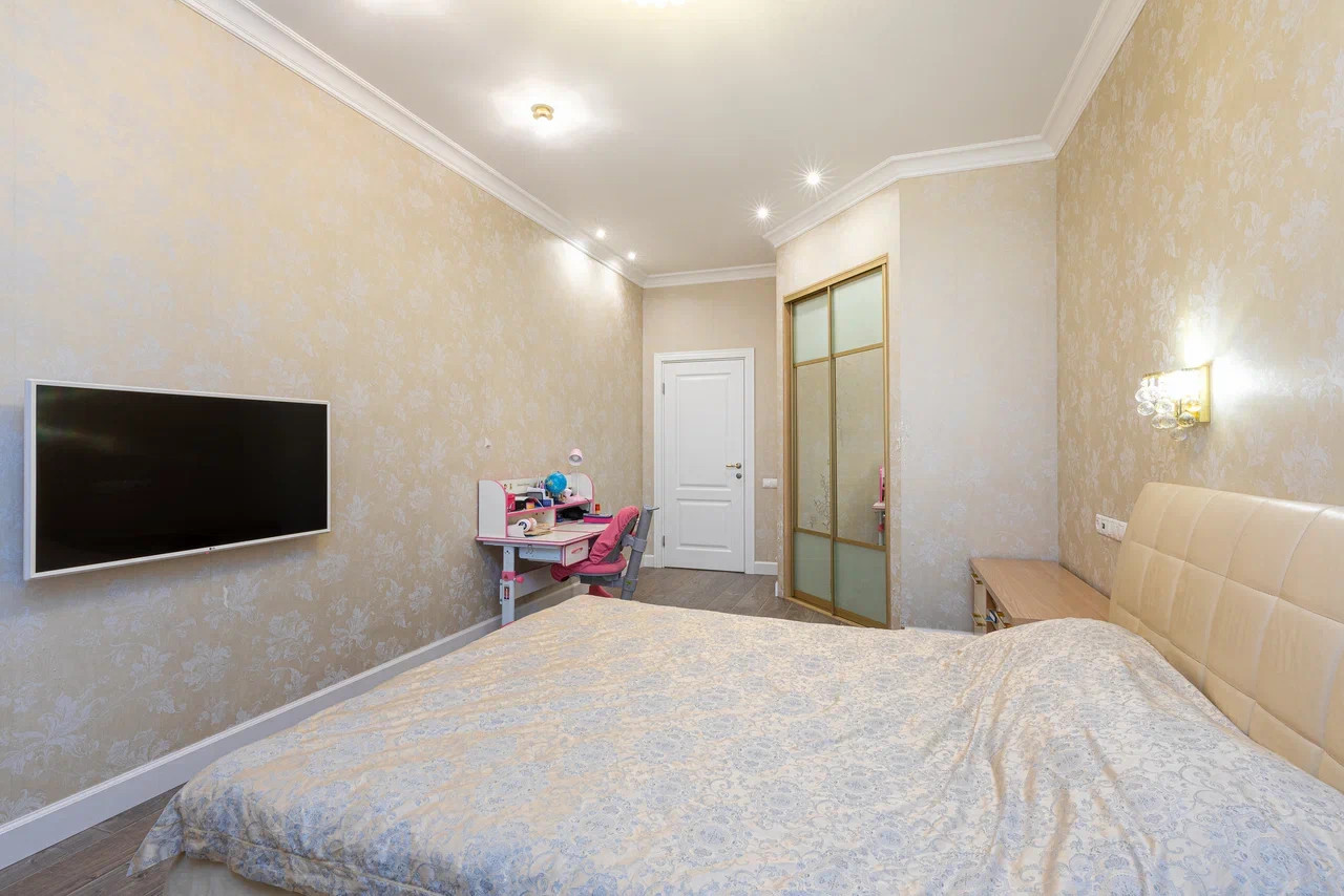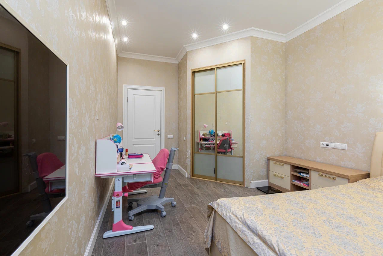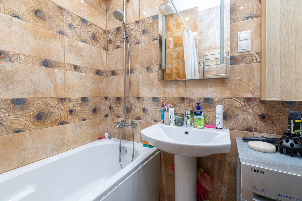 Новым владельцам остаются полностью укомплектованная кухня с холодильником и духовым шкафом, стиральная машина, вся встроенная мебель.