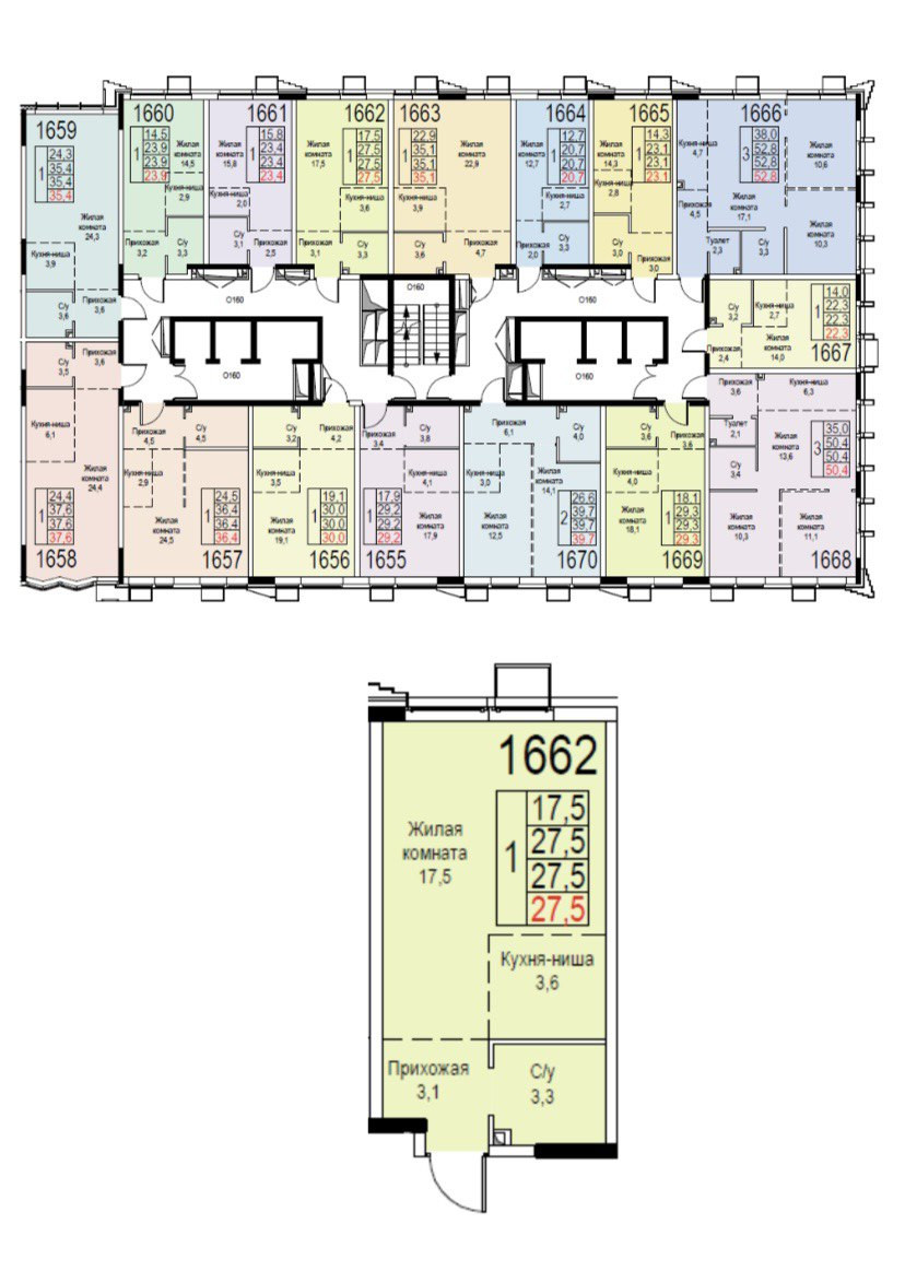 Общая площадь 27.5 м2