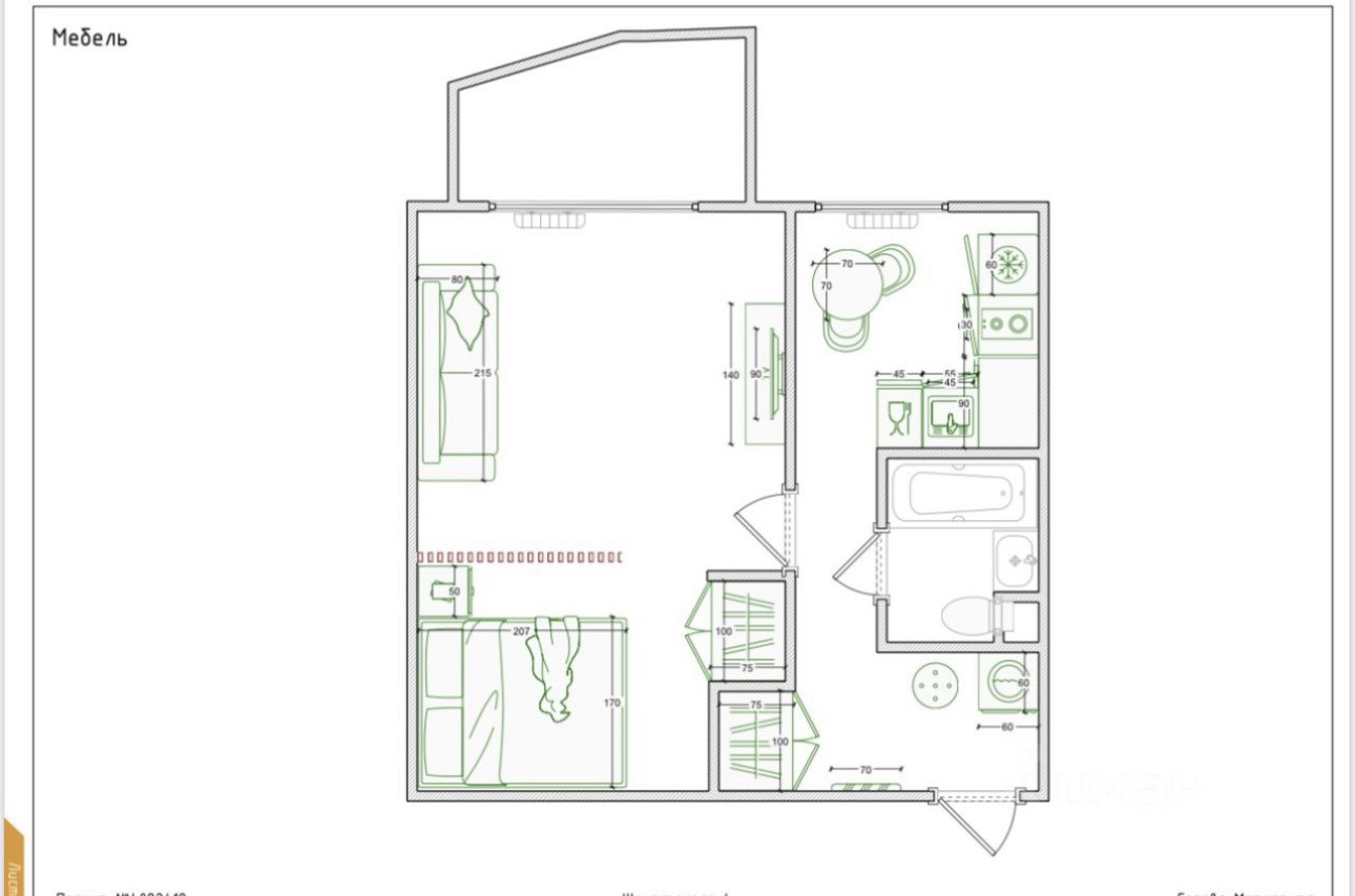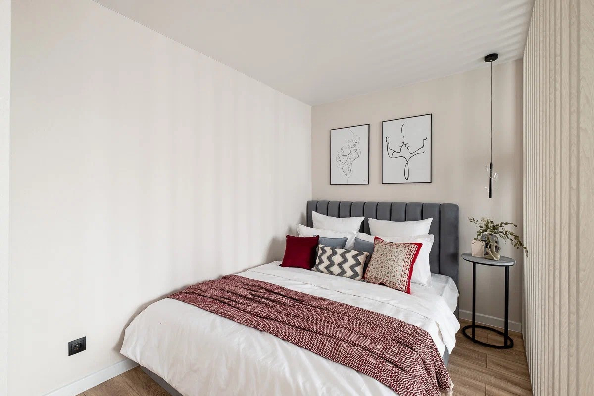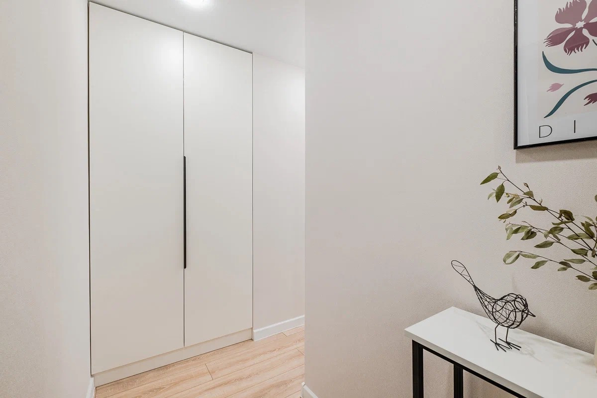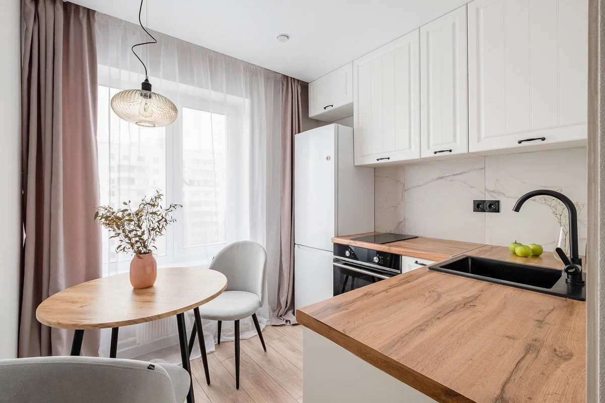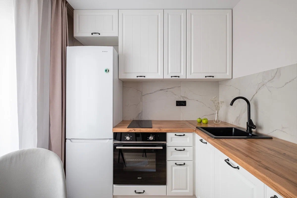 Грамотная планировка: есть зоны хранения, уединенная спальня, гостиная с раскладывающимся диваном, полноценная кухня со всей техникой.