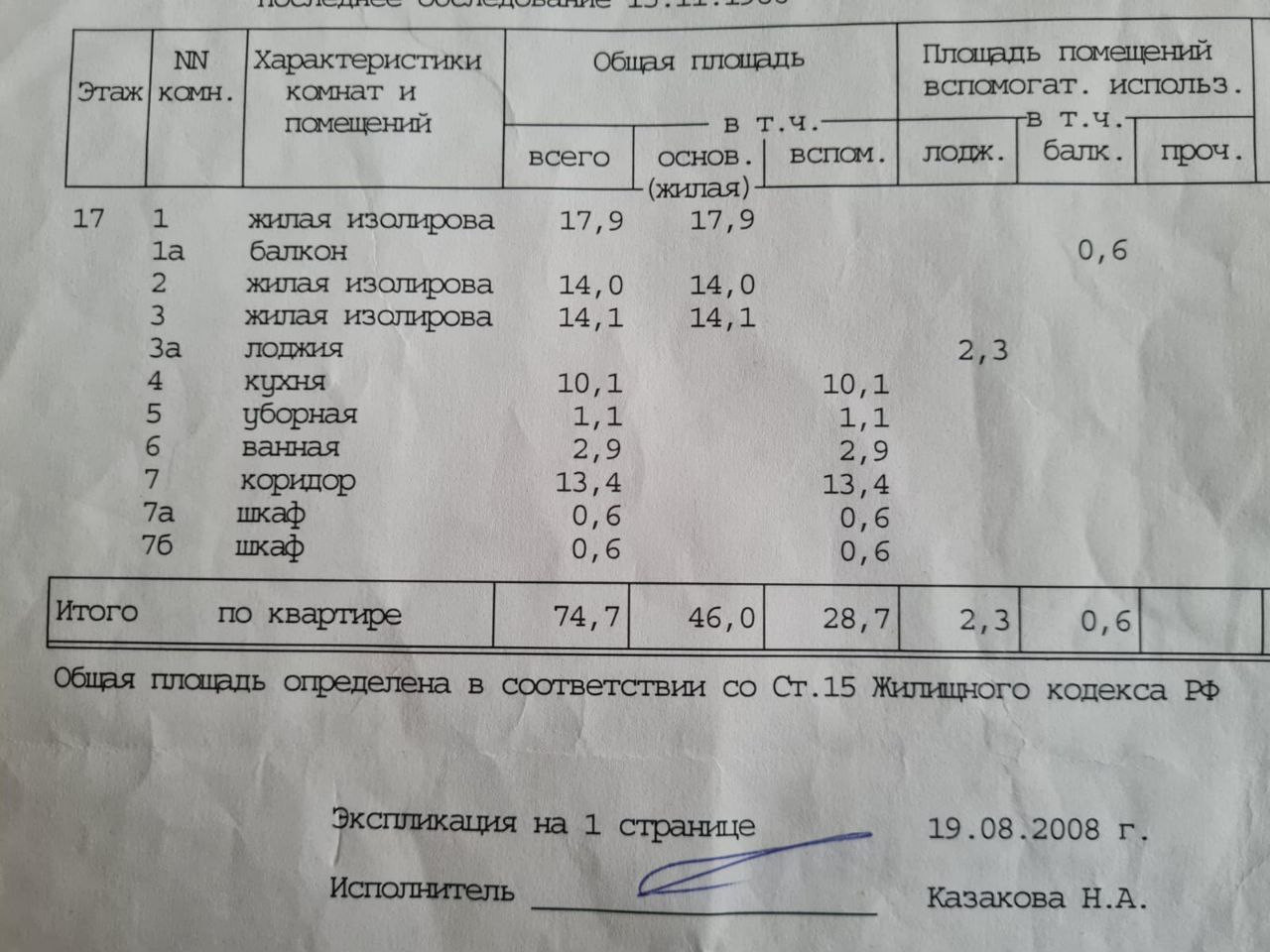 Общая площадь 74.7 м2