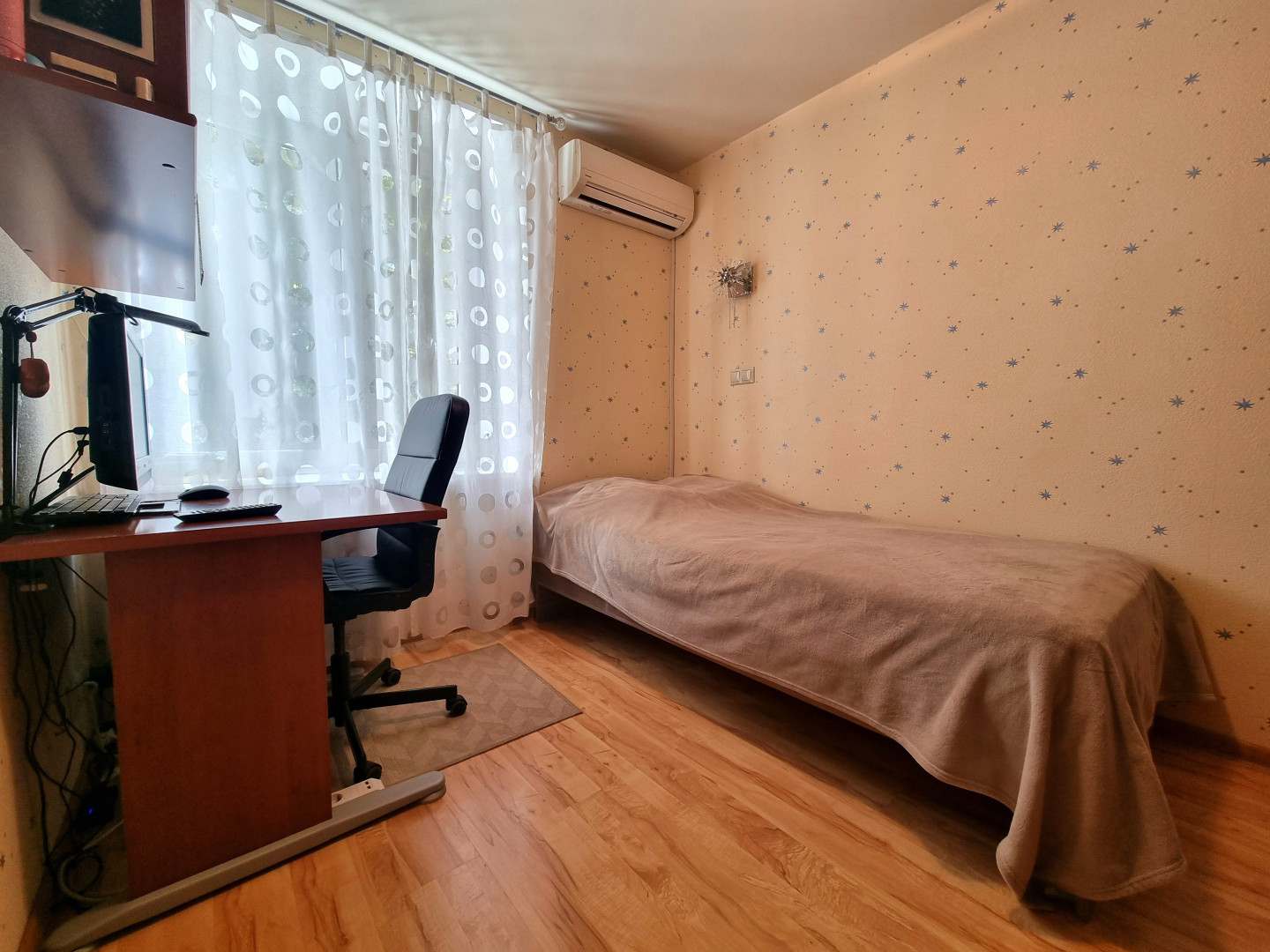 Квартира находится на 3 этаже 9-ти этажного кирпичного дома. Квартира с ремонтом,состояние заехать и жить. Комнаты раздельные, полы во всей квартире ламинат,натяжные потолки. Окна пластиковые, балкон застеклен. Окна выходят во двор. Чистый подъезд.