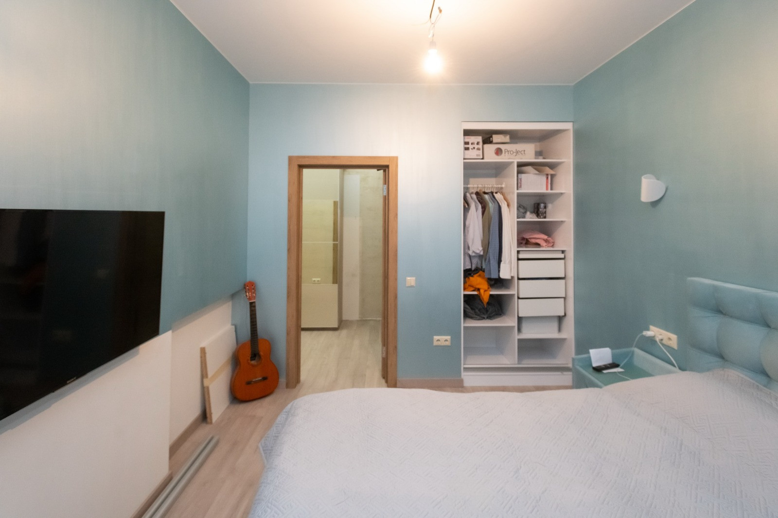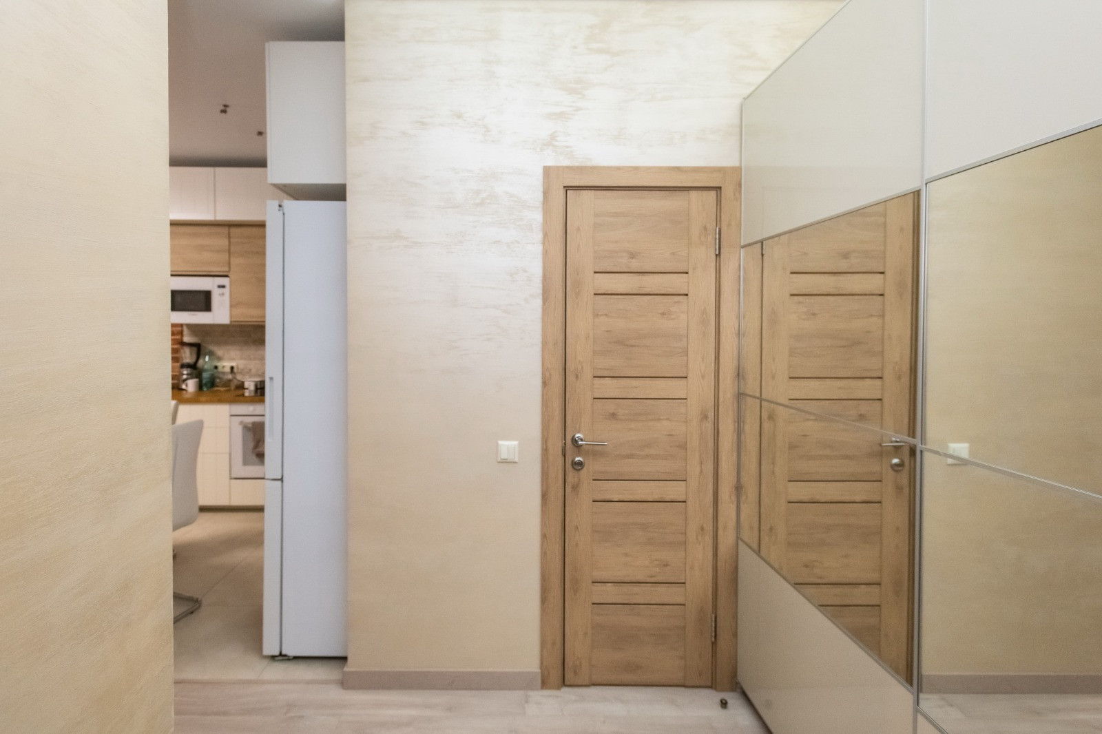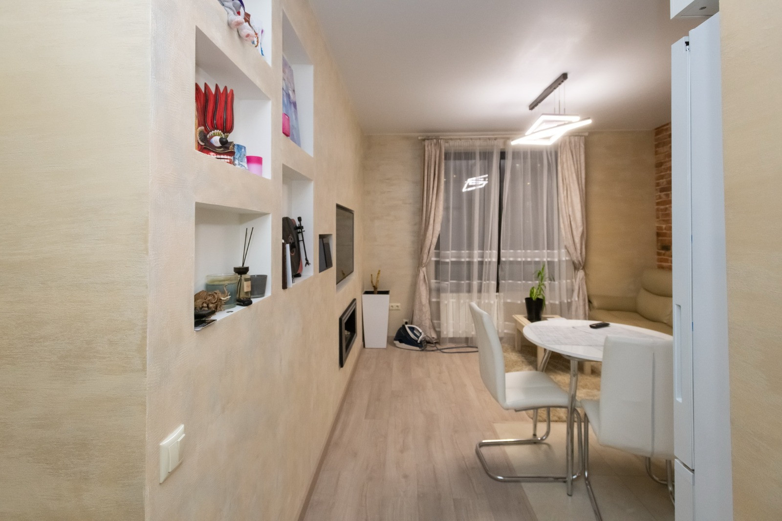 В квартире выполнен современный дизайнерский ремонт, установлена качественная мебель и электроника (все остается новому покупателю). Стены отделаны декоративной краской и декоративной штукатуркой, натяжные потолки, на полу ламинат. Высота потолка 3 метра. Большие окна.