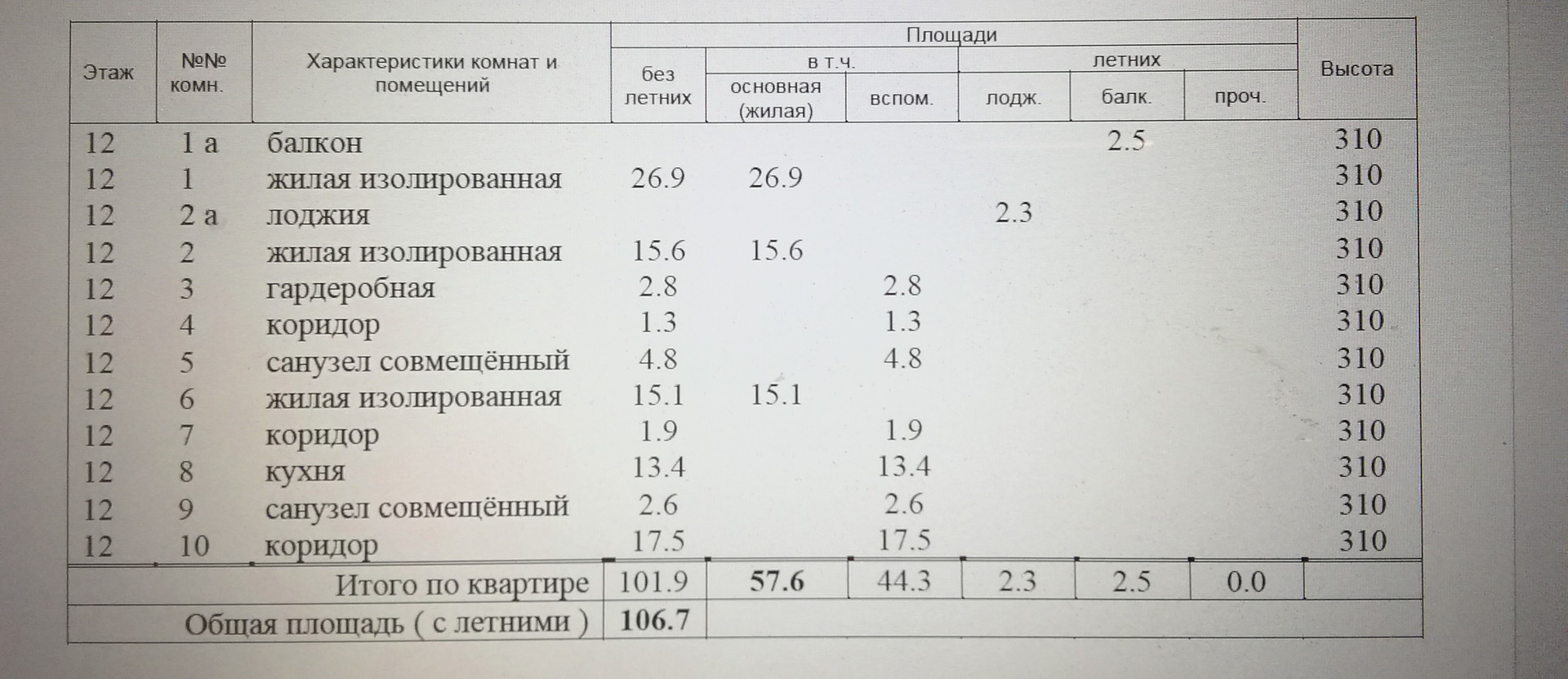 Общая площадь 106.7 м2