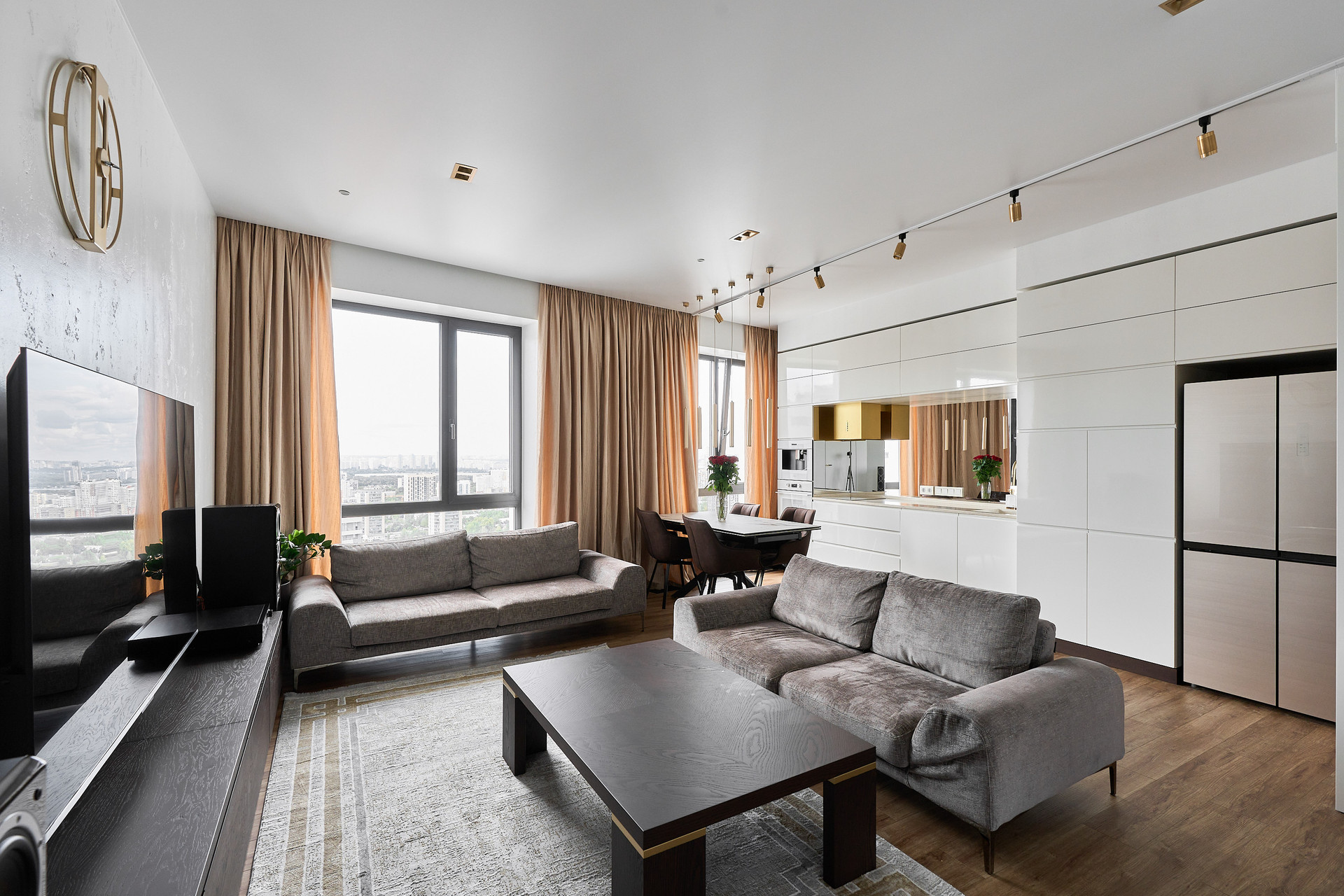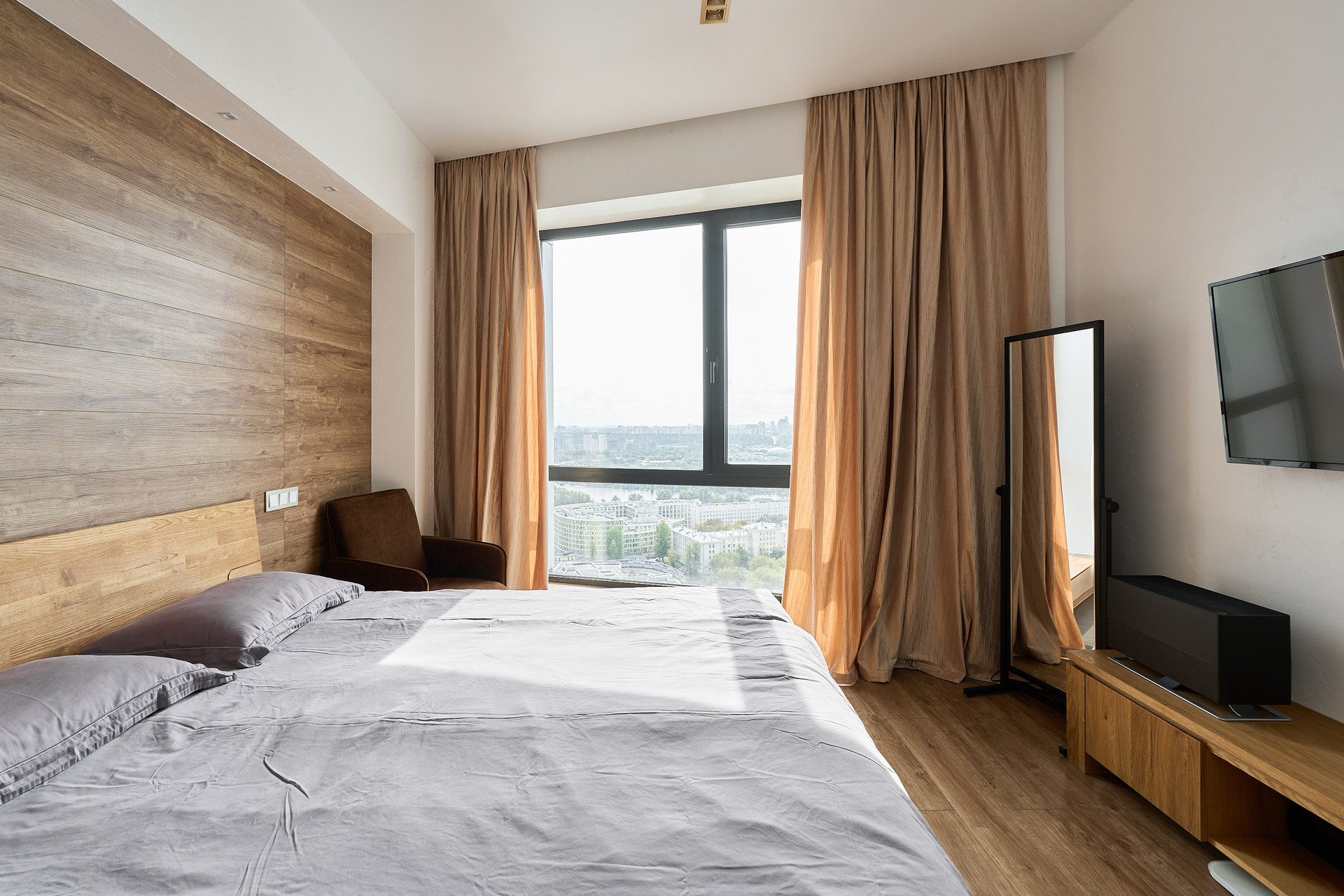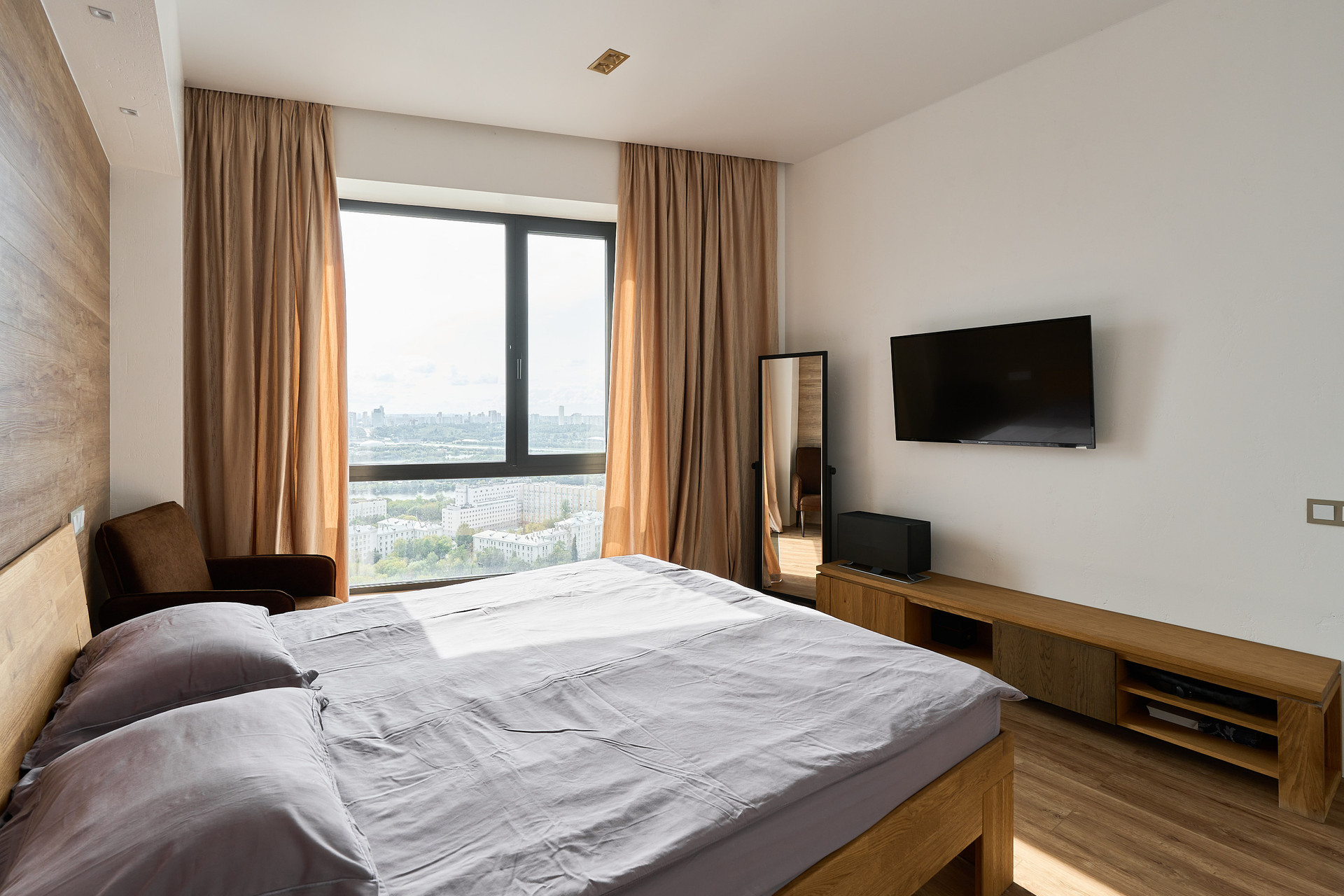 Видовая квартира с 2-мя спальнями площадью 83 м² в современном комплексе Wellton Towers. Квартира расположена на 31 этаже в корпусе 3. Выполнена дизайнерская отделка в светлых лаконичных тонах в современном стиле, интерьеры укомплектованы мебелью и бытовой техникой. Планировка: кухня-гостиная, мастер-спальня с собственной ванной и гардеробной, вторая спальня, санузел, прихожая. Благодаря панорамным окнам пространство наполнено естественным светом, открываются виды на город.