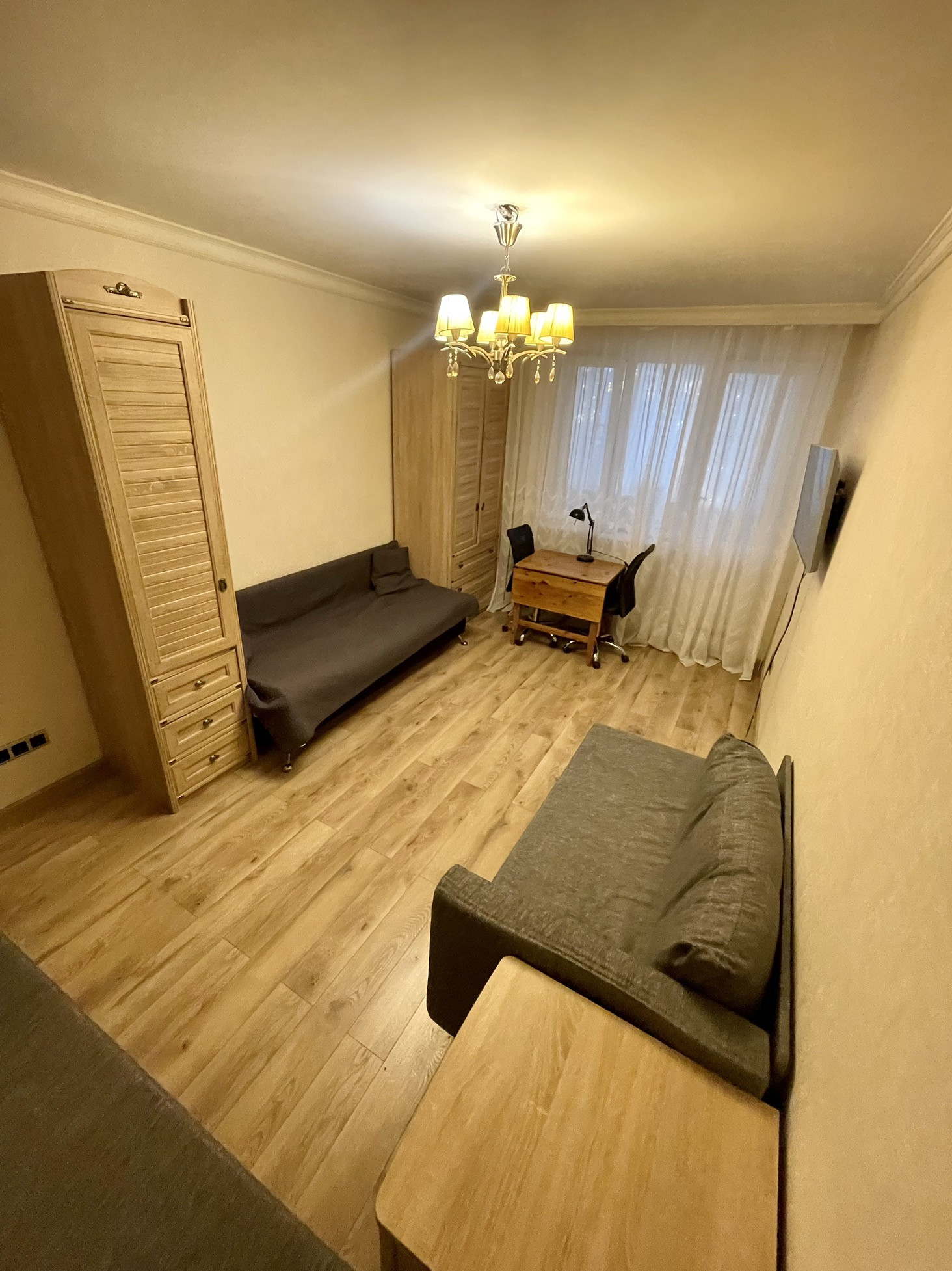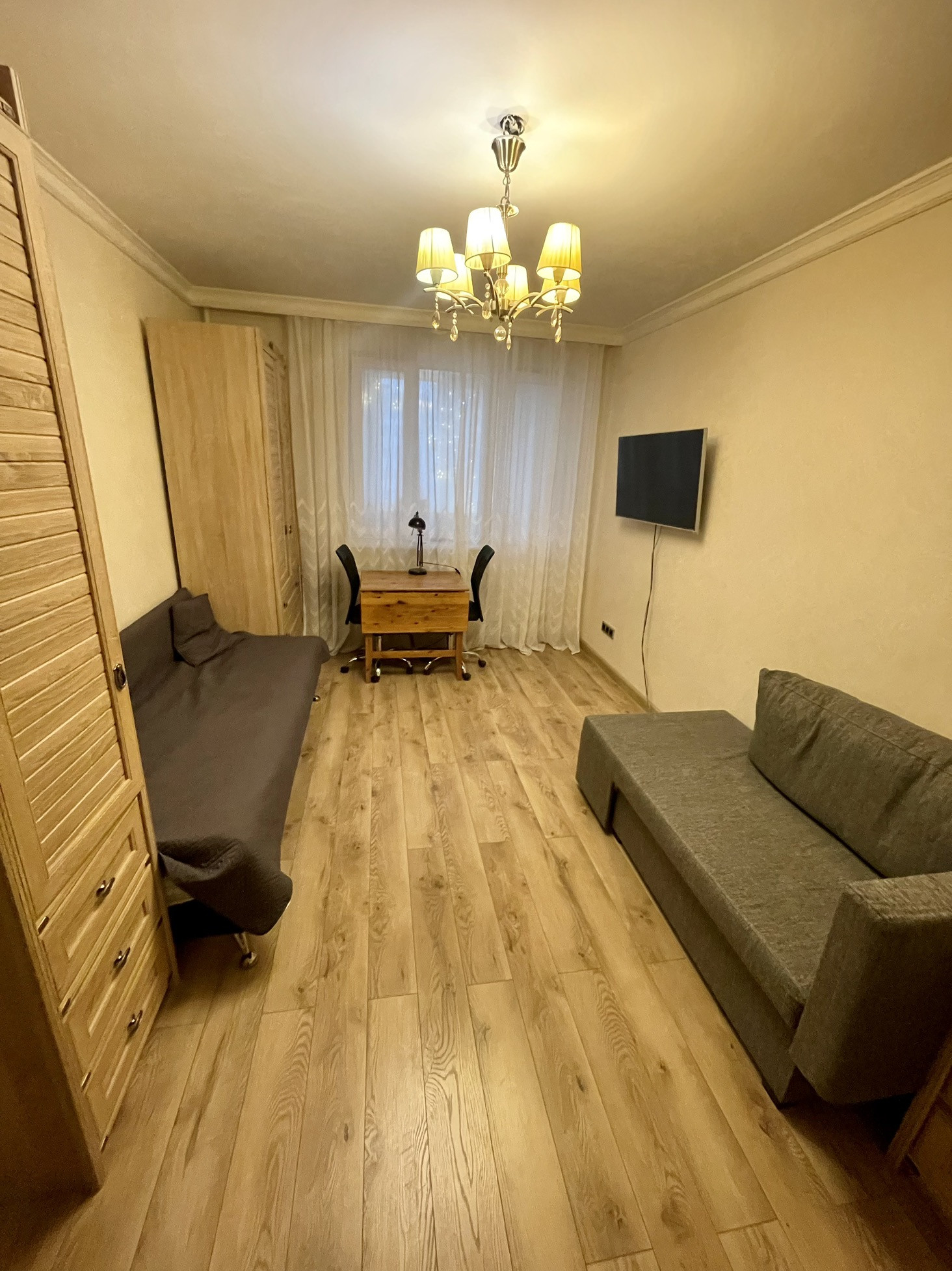 Квартира с хорошим ремонтом, уютная, светлая, продается частично с мебелью: встроенный кухонный гарнитур и техника , большой шкаф купе, кондиционер. На окнах стеклопакеты.