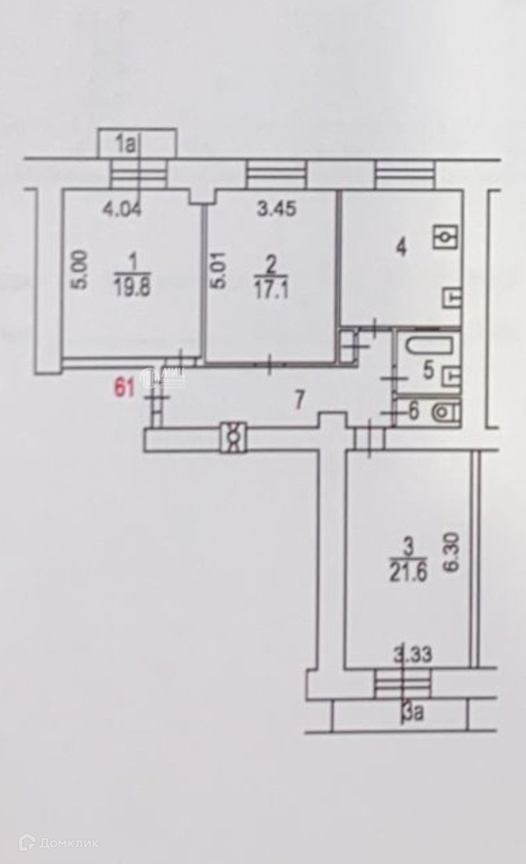 Жилая площадь 58.5 м2