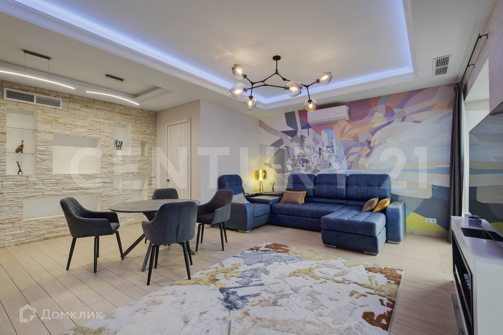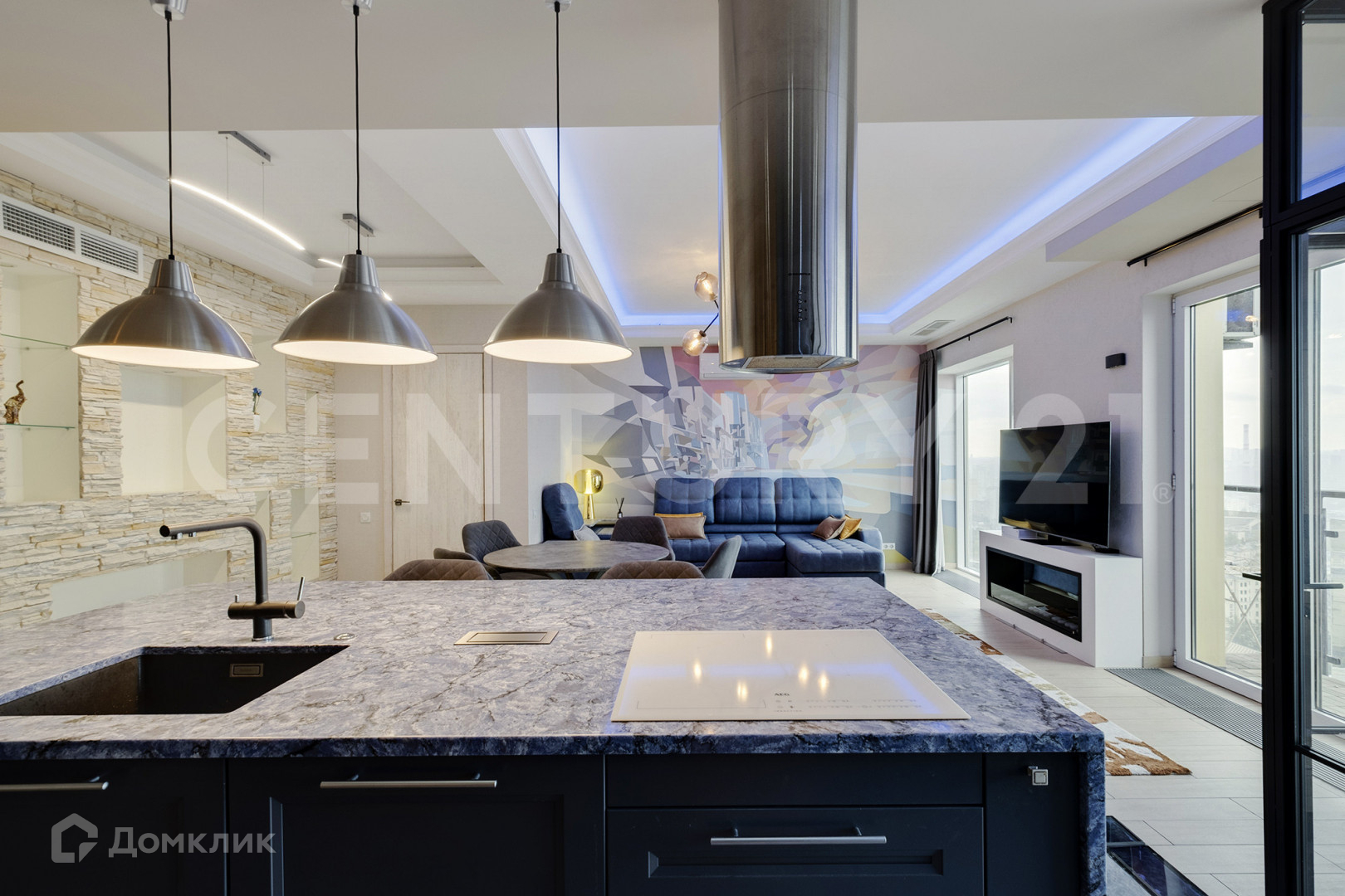 В квартире выполнен ремонт по дизайн проекту с использованием эксклюзивных, натуральных материалов. Кухня гостиная 35 м2 оборудована всей необходимой бытовой техникой производства AEG, Haier, есть посудомоечная машина, отдельная вытяжка. Для создания атмосферы и уюта в гостиной установлен камин. Благодаря панорамным окнам от пола и высоким потолкам, вся квартира наполнена светом, открываются живописные виды на на МГУ, Шуховскую башню, Дом Музыки, Москва-Сити, центр Москвы и парк Остров Мечты. Спальня 22 м2 оборудована просторным гардеробом и отдельным санузлом, дизайн комнаты выполнен в спокойных тонах с шоколадным оттенком. Кабинет 10 м2 наполнен естественным освещением, создавая комфорт для работы и отдыха. Для удобства всех членов семьи в квартире оборудовано два санузла, две гардеробные, прачечная. В интерьере продумана каждая деталь. Установлена система вентиляции, кондиционеры, подогревы полов и водонагреватель. Все мебель и интерьер остаются в квартире, что позволят без дополнительных затрат проживать новым владельцам или сдать в долгосрочную аренду.
