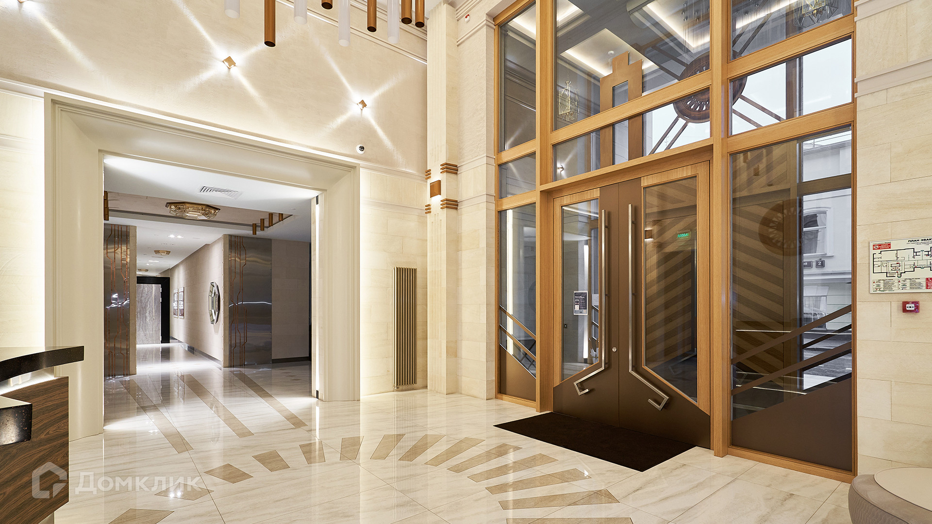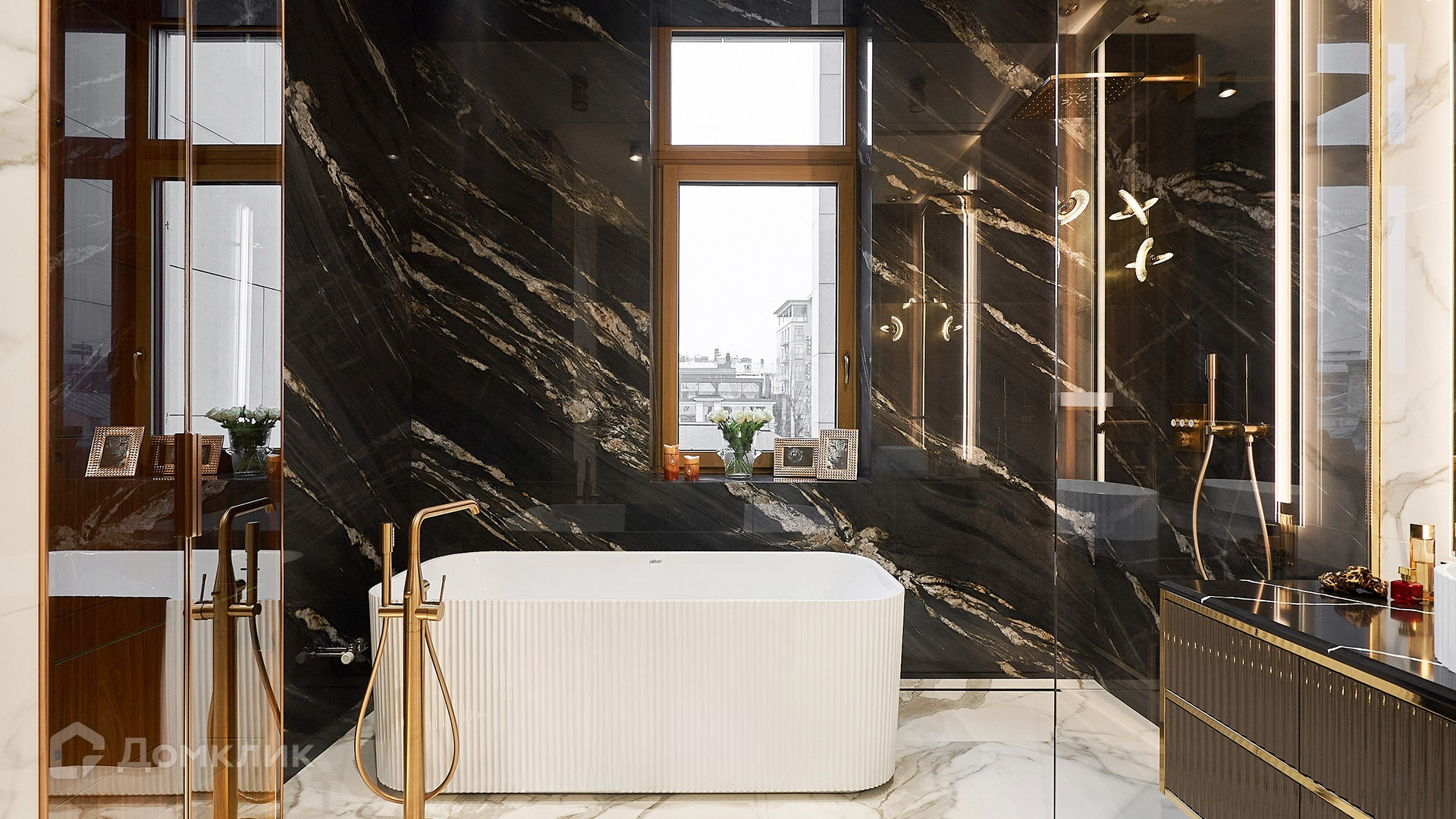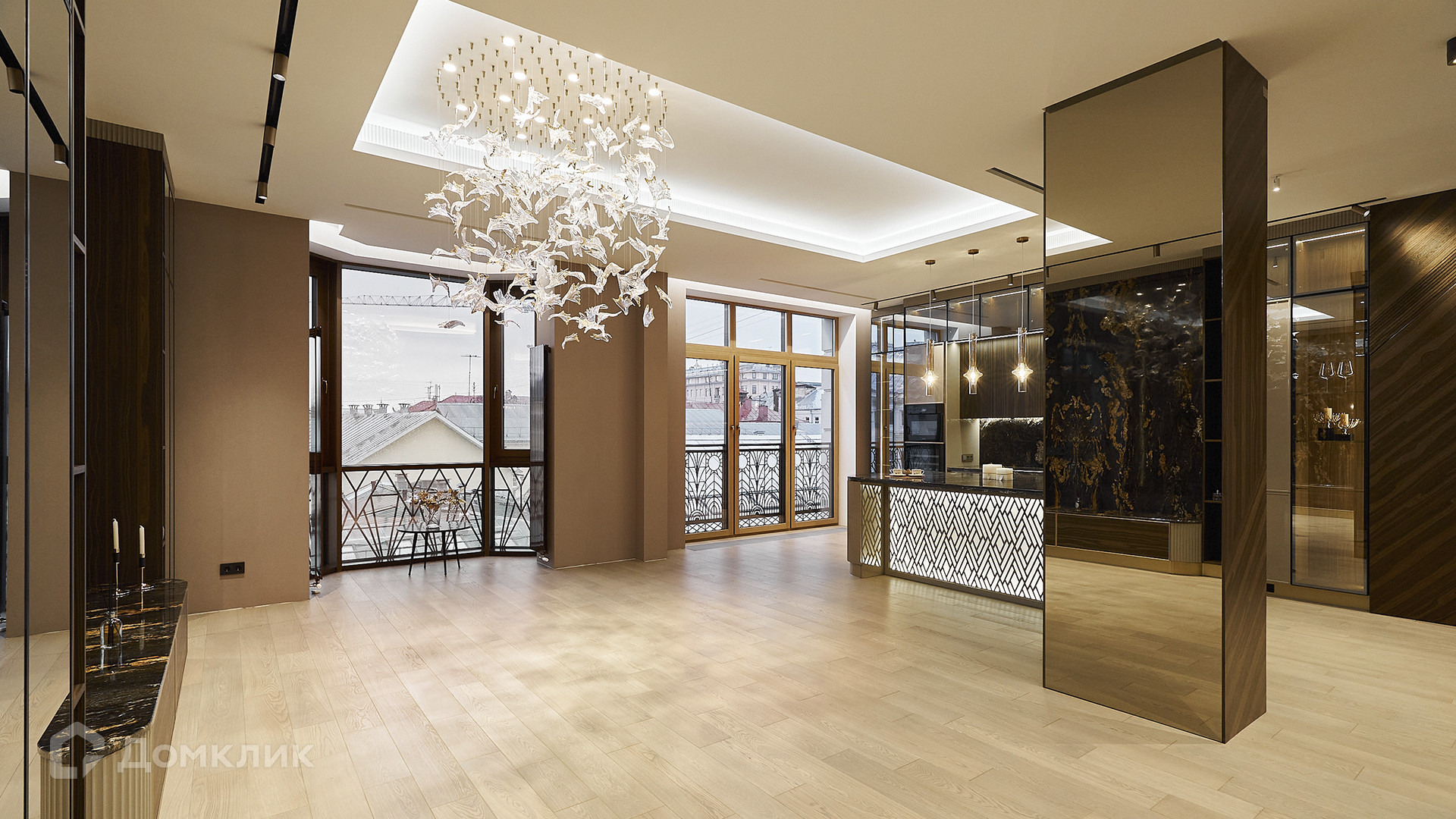 Панорамные окна выходят на две стороны света — на северо-восток с видом на Храм Христа Спасителя, на юго-запад с видом во внутренний двор. Реализованы система приточно-вытяжной вентиляции с увлажнением воздуха, мультизональная VRF-система кондиционирования, общедомовая и индивидуальная системы очистки воды, система теплых полов и стен в санузлах, умный дом протокола KNX HDL на базе Ekinex. Предусмотрено машиноместо в подземном паркинге.