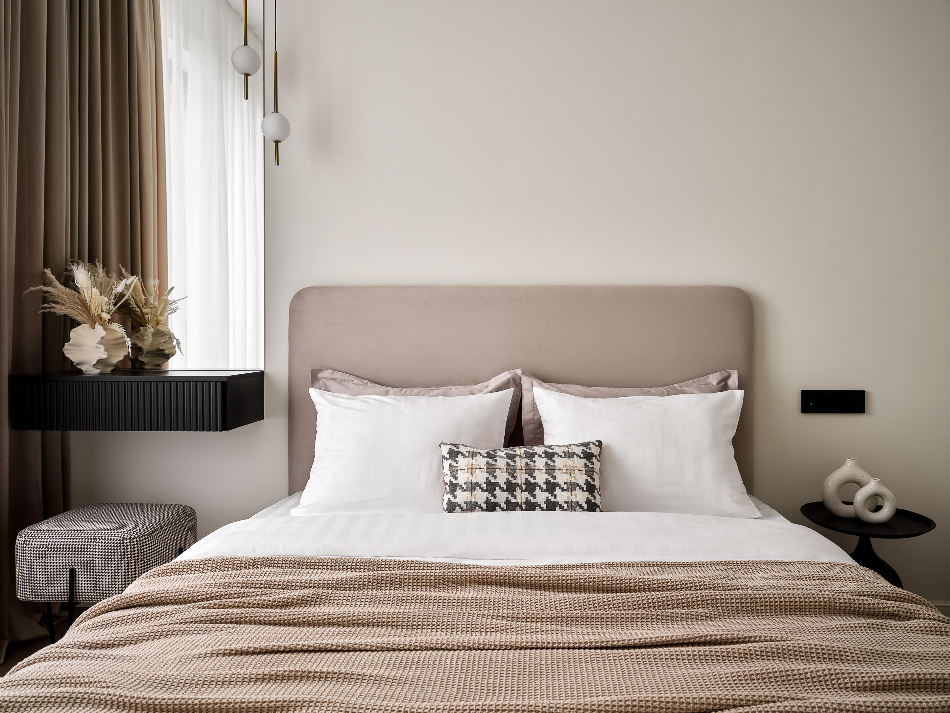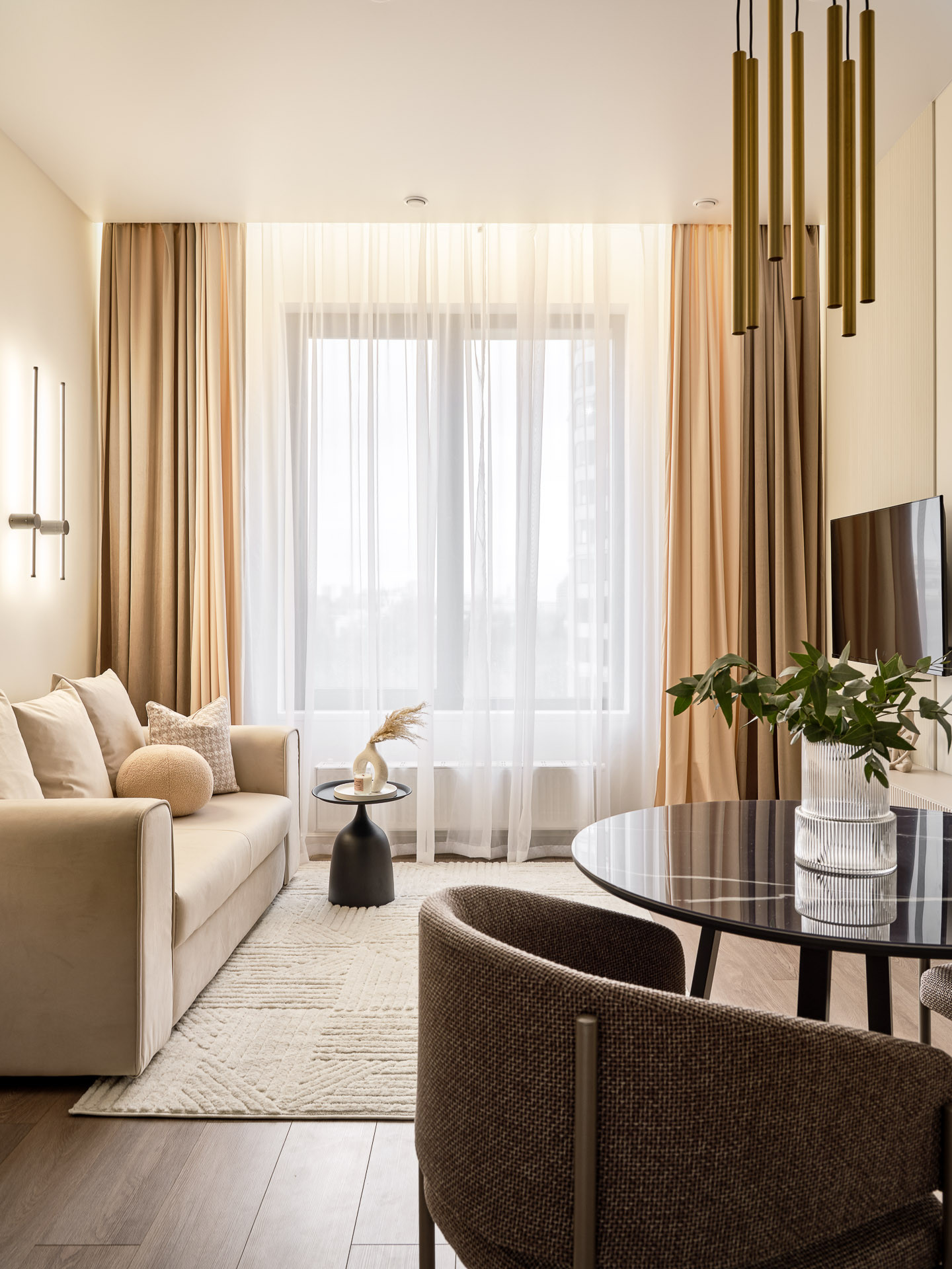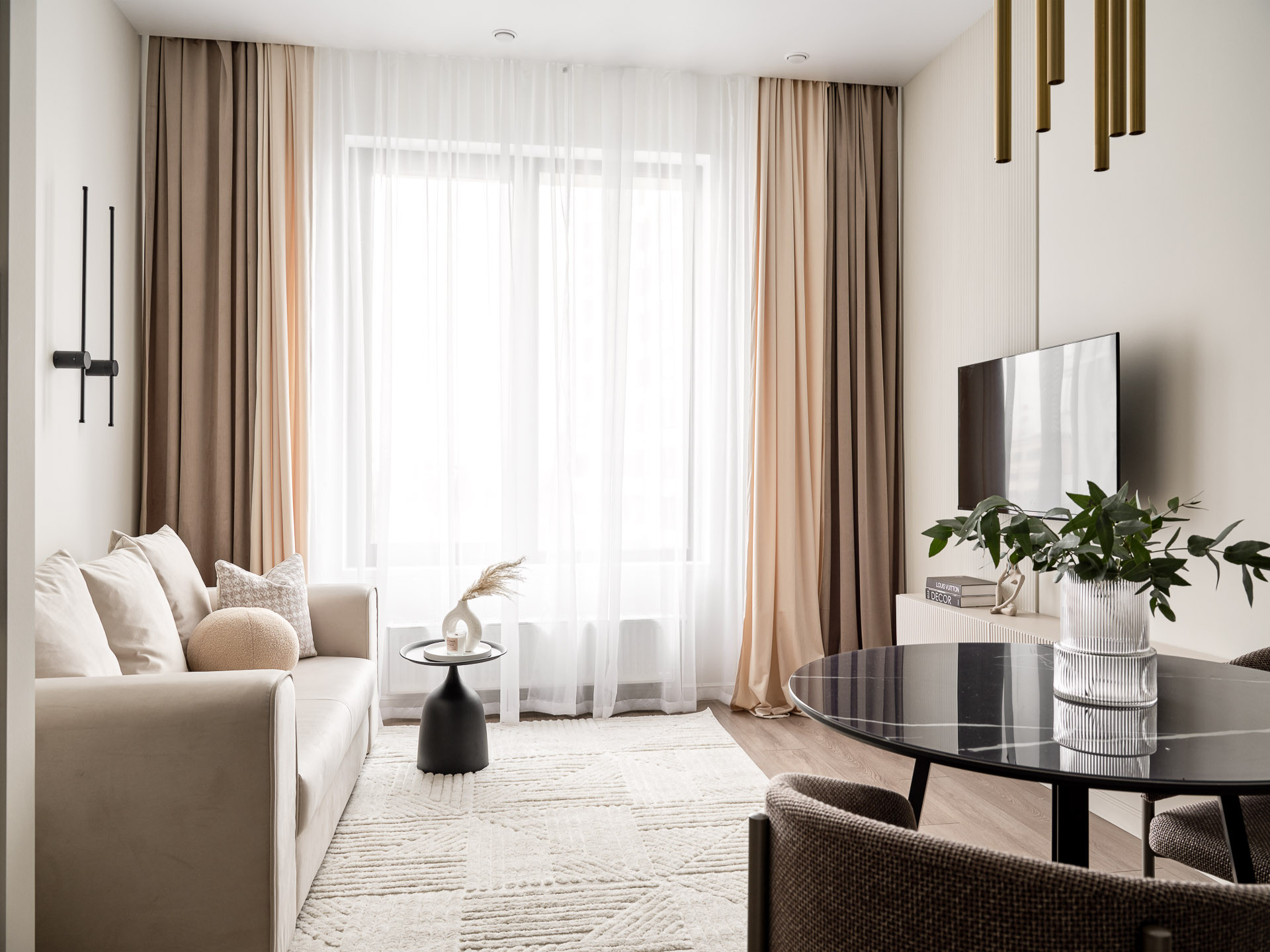 В отделке использованы мягкие благородные цвета и оттенки. Светлое, стильное и эргономичное пространство создает атмосферу спокойствия и расслабления!