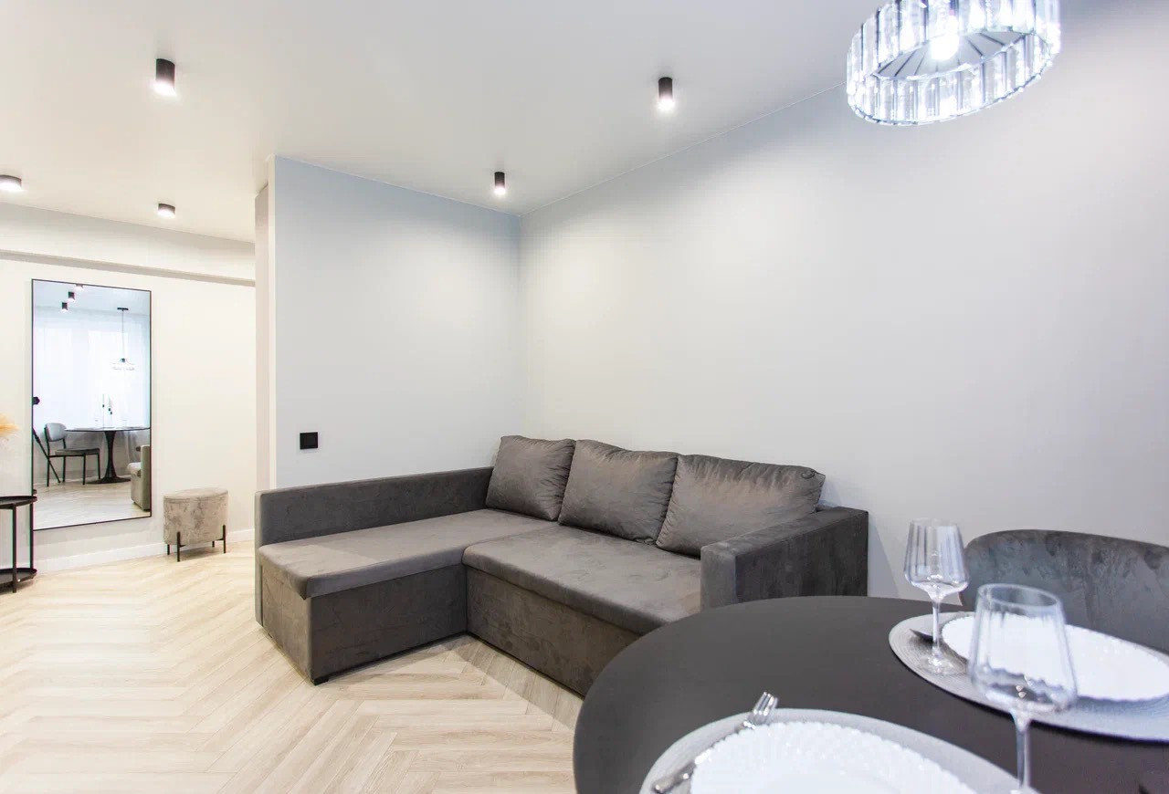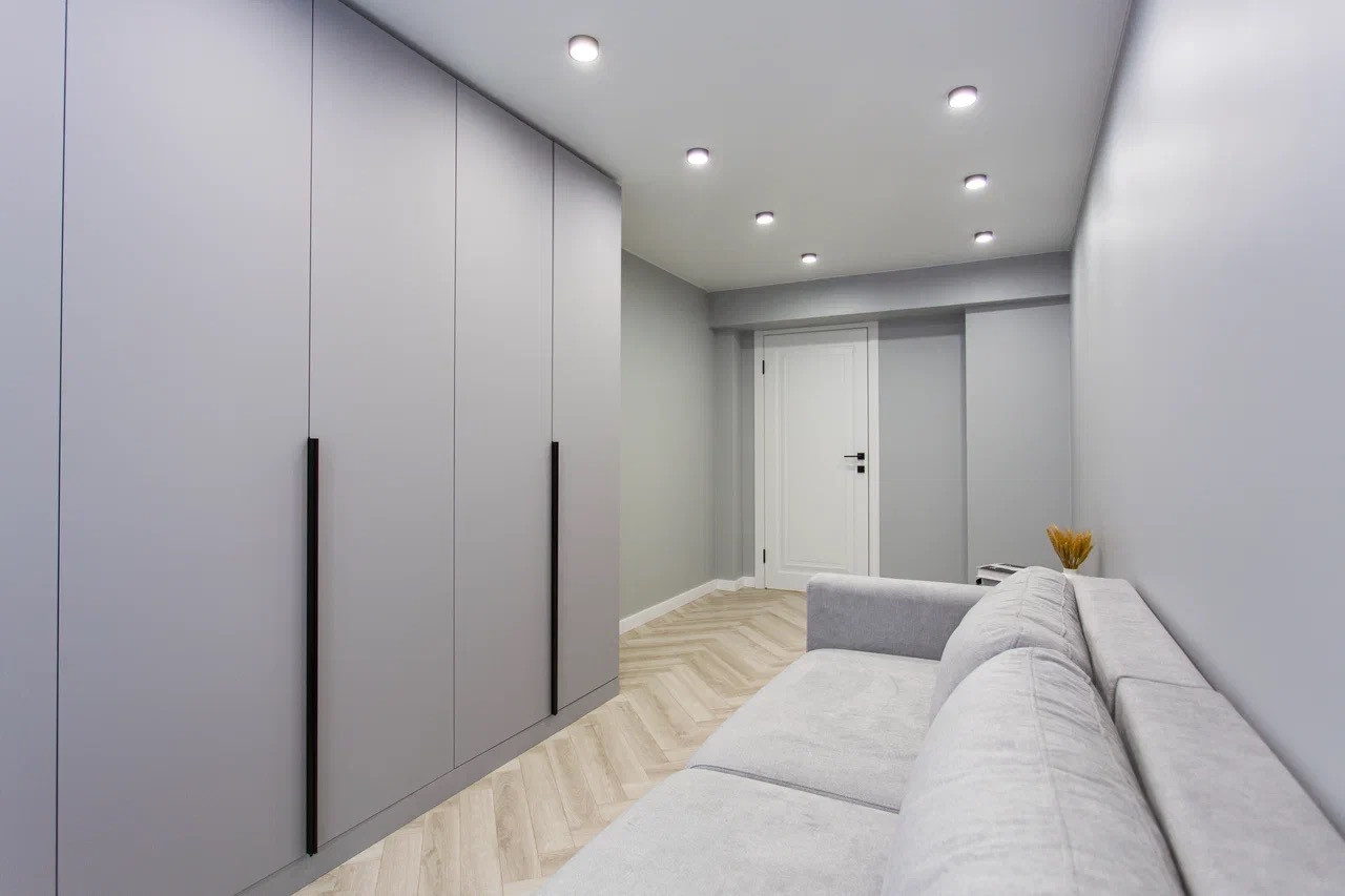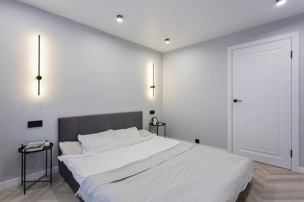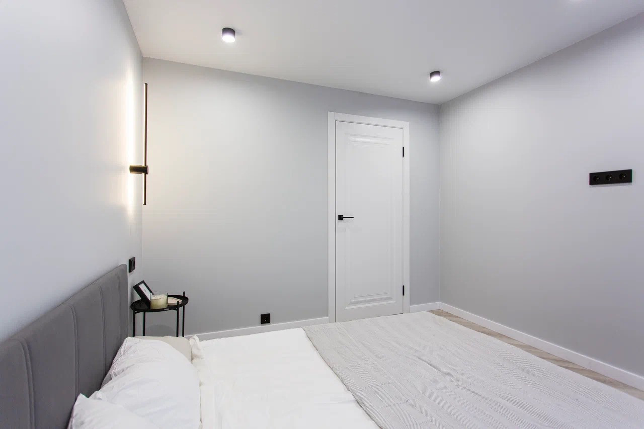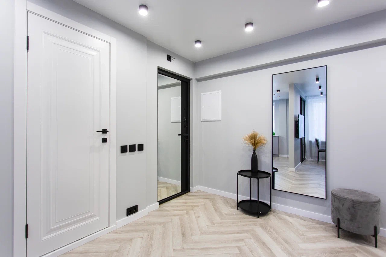 Качественный стильный ремонт и дизайн квартиры выполнен в светлых оттенках.