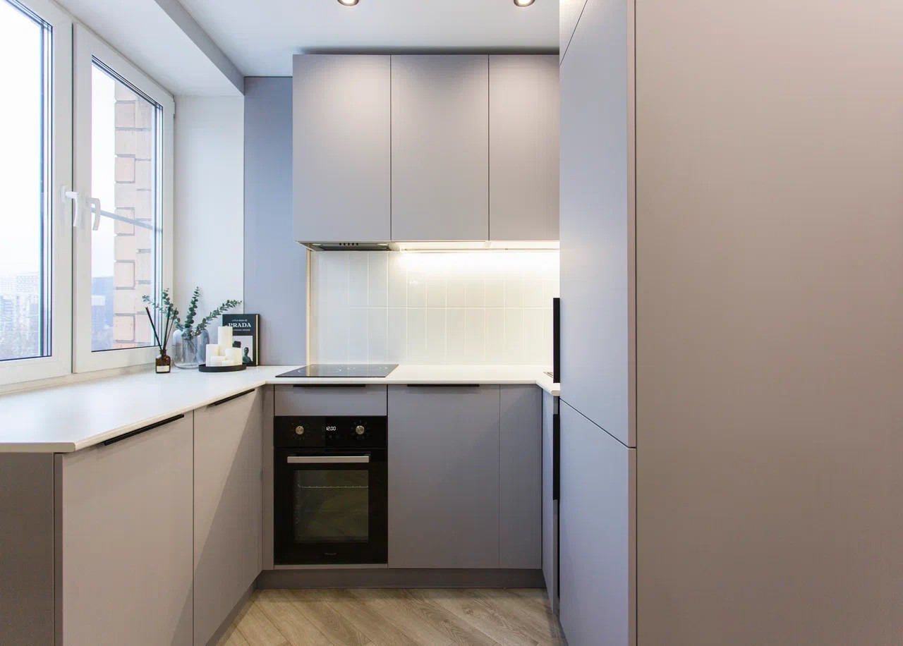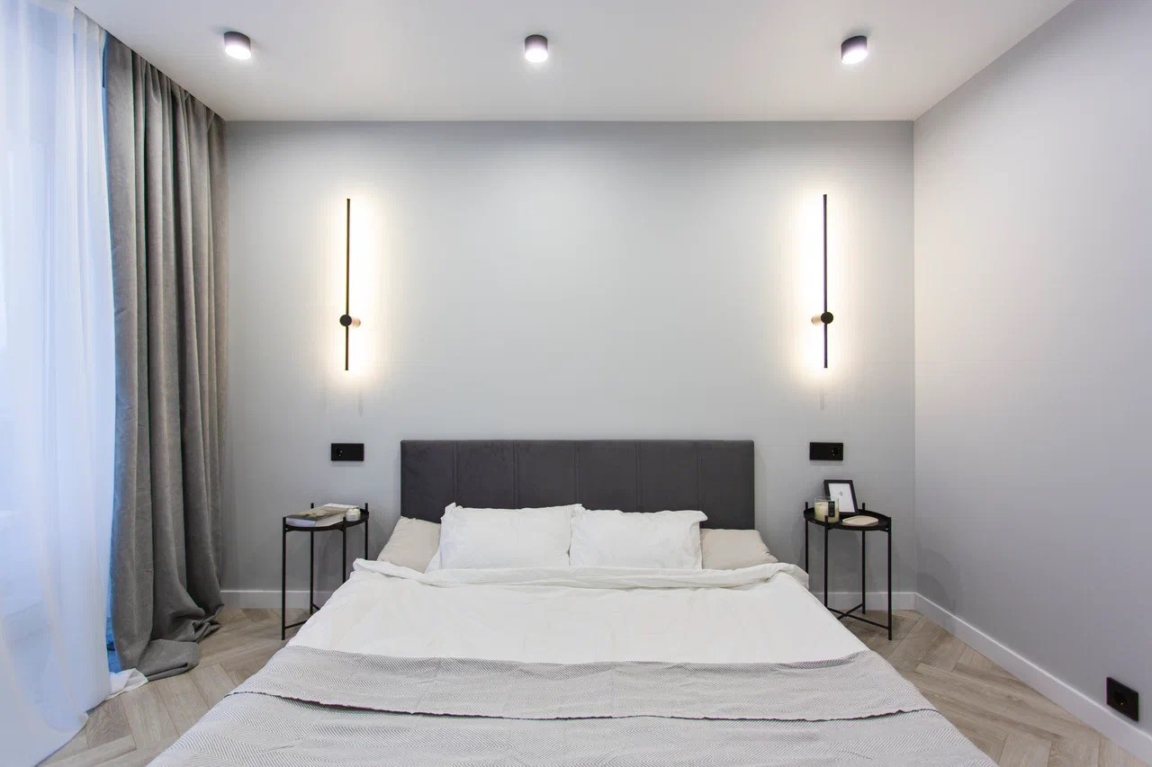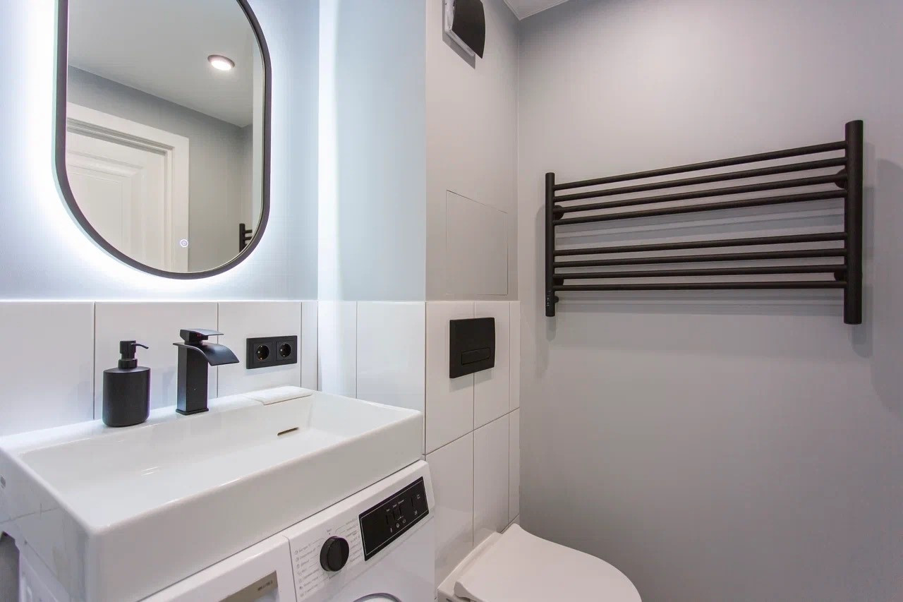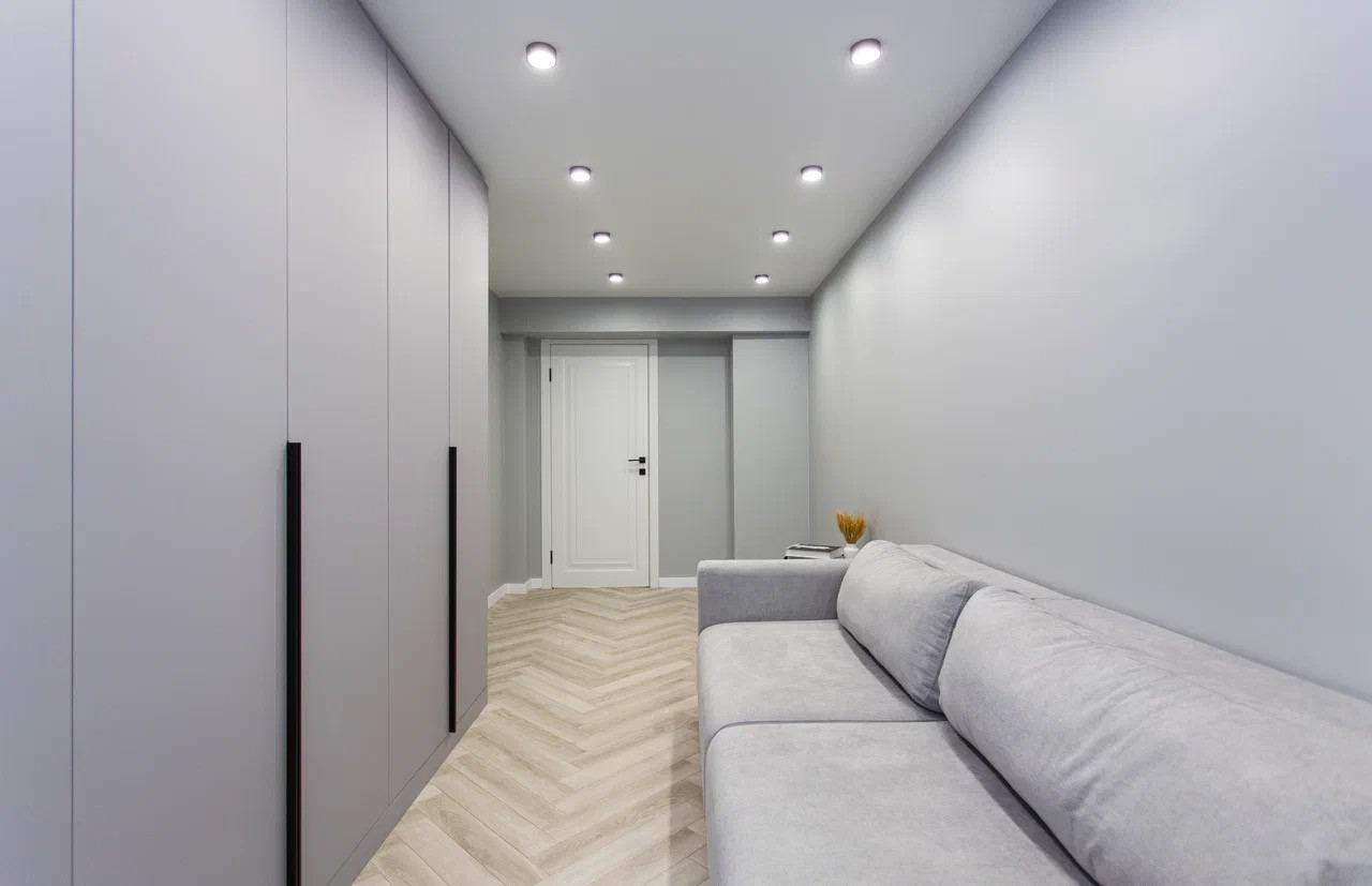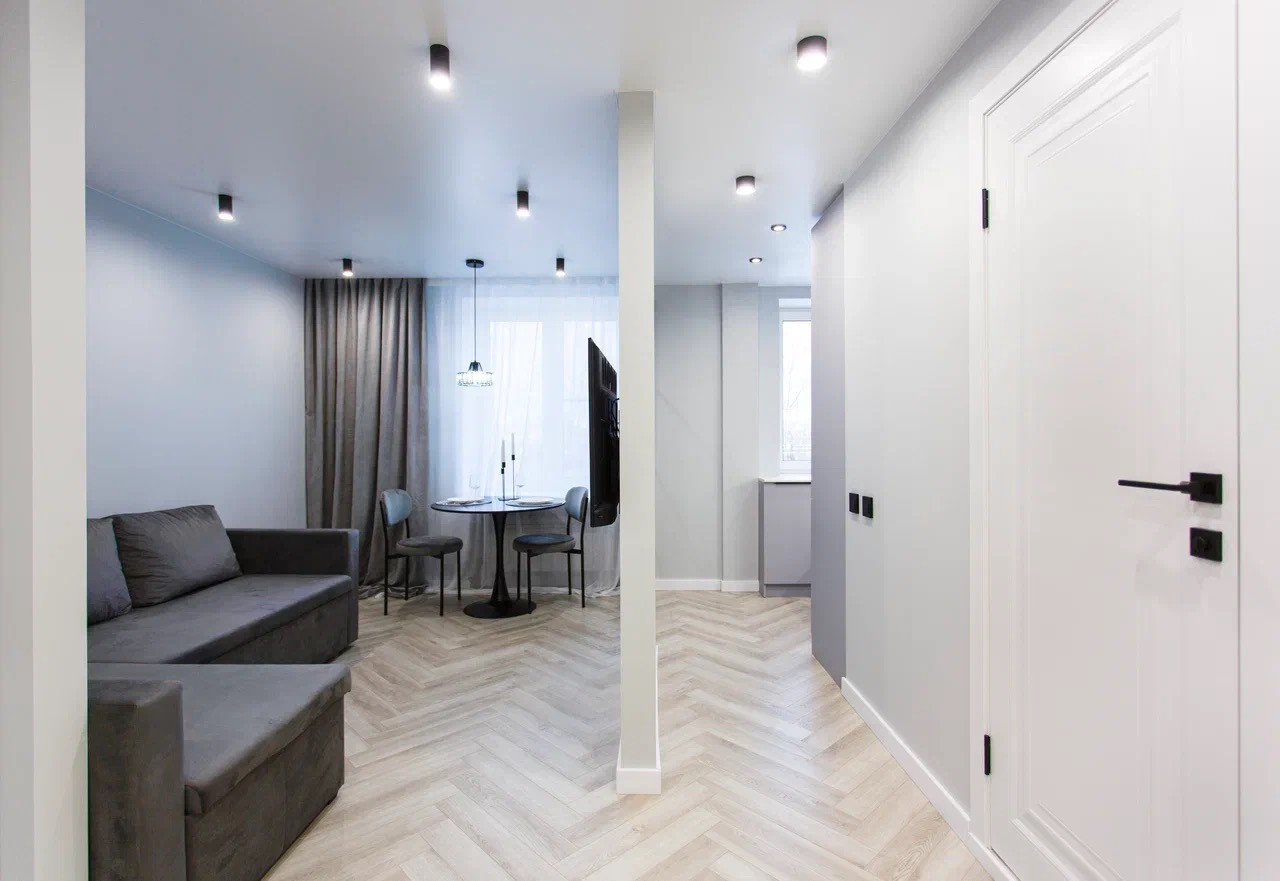 Качественный стильный ремонт и дизайн квартиры выполнен в светлых оттенках.
