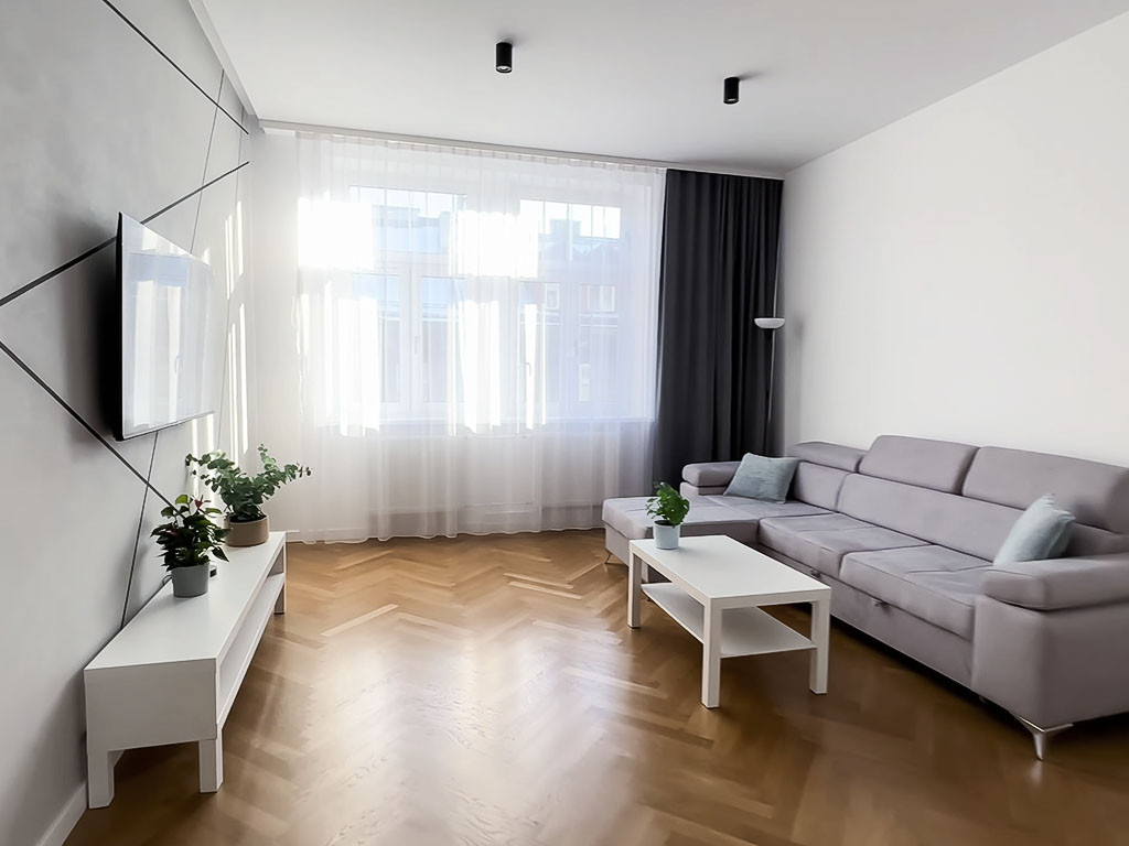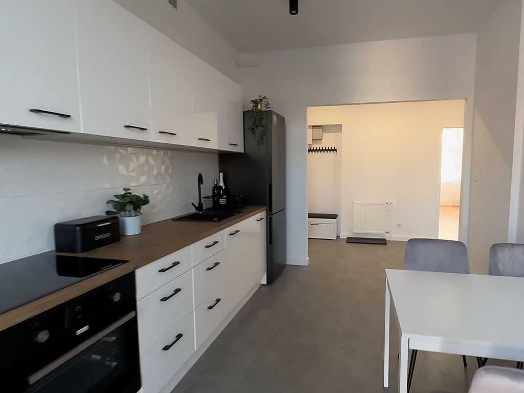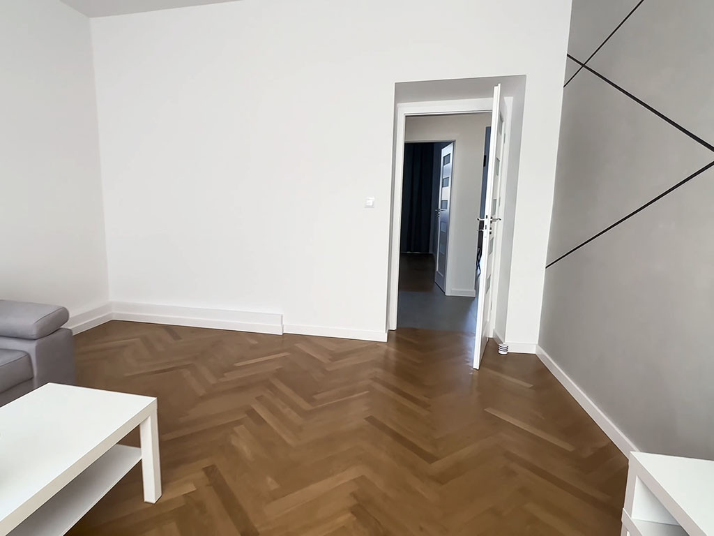 Расположена на 8-м этаже в 14-ти этажном доме. Дом сдан в 2007 году. В квартире хороший ремонт в классическом стиле и спокойных тонах. На полу паркет и плитка, стены – качественная штукатурка и покраска, натяжные потолки. Установлена встроенная мебель. Квартира не требует дополнительных вложений.