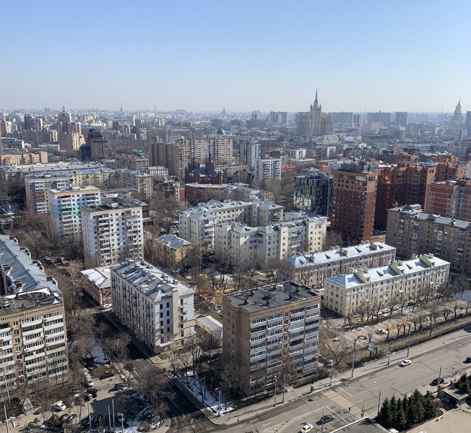 Видовая евродвушка с панорамным видом на центр Москвы: на Кремль, 6 высоток, Кафедральный собор, Белый дом, книжки Нового Арбата.