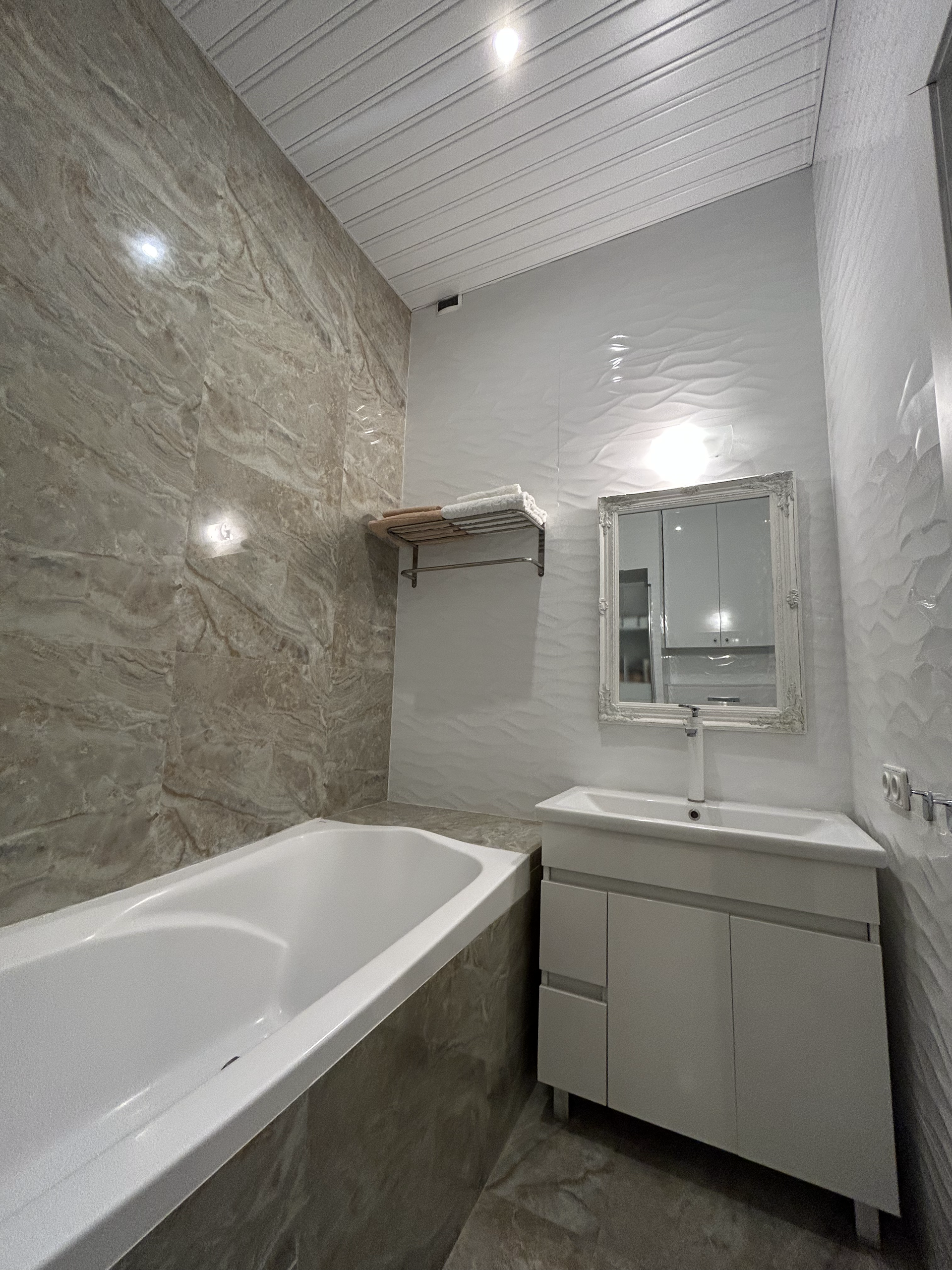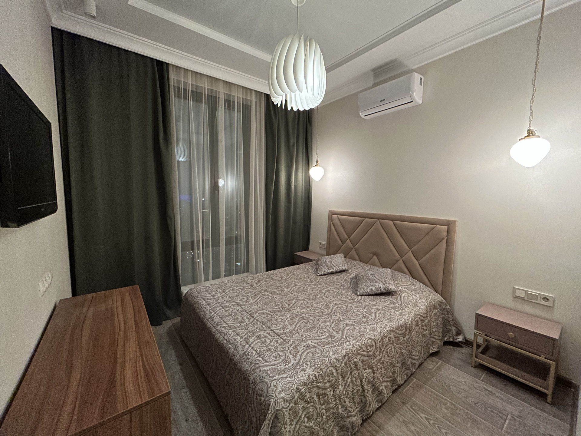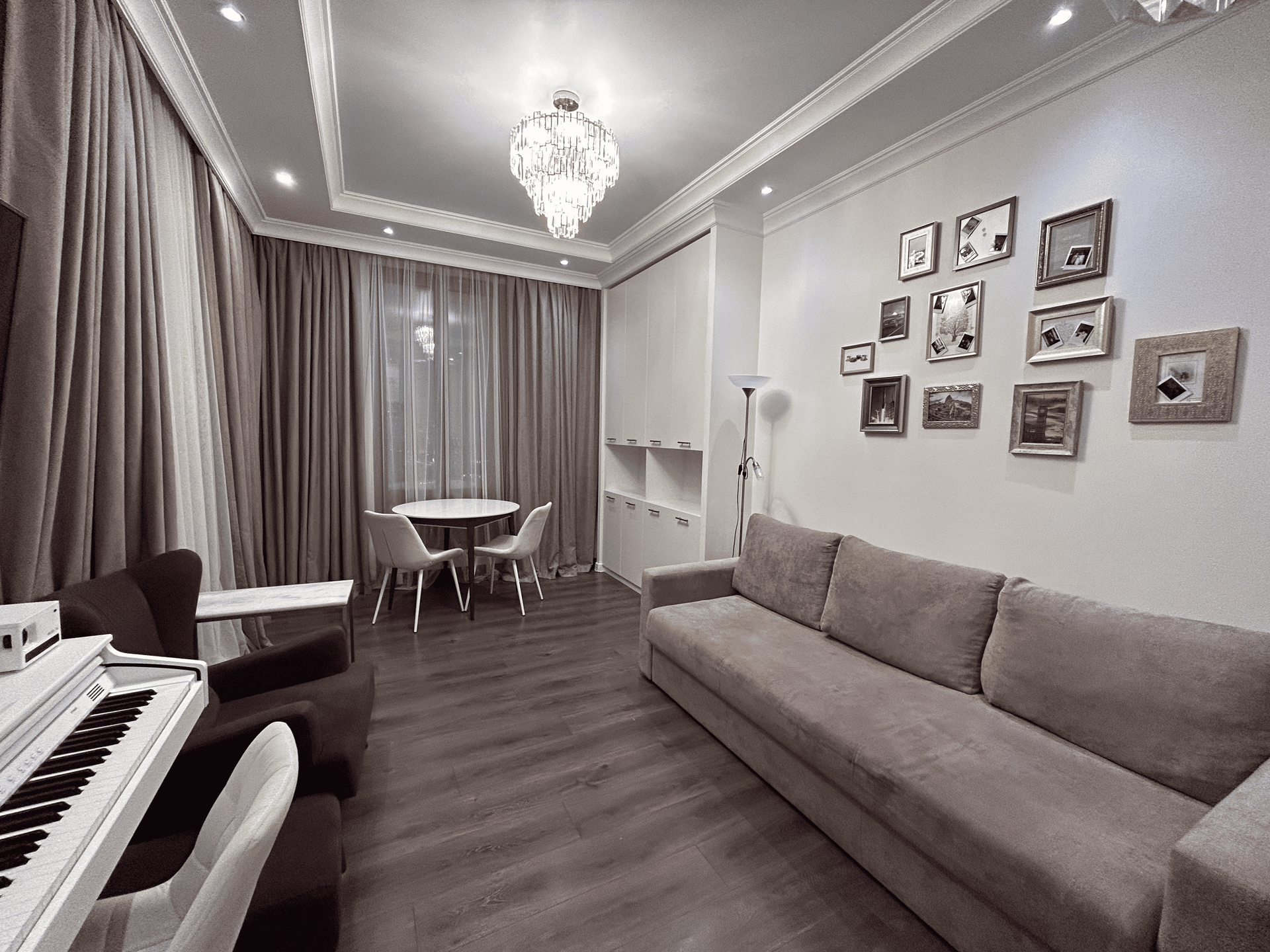 Покупалась от застройщика, ремонт делался в 2019 году для себя. В квартире просторная кухня-гостиная, спальня, санузел и гардеробная.