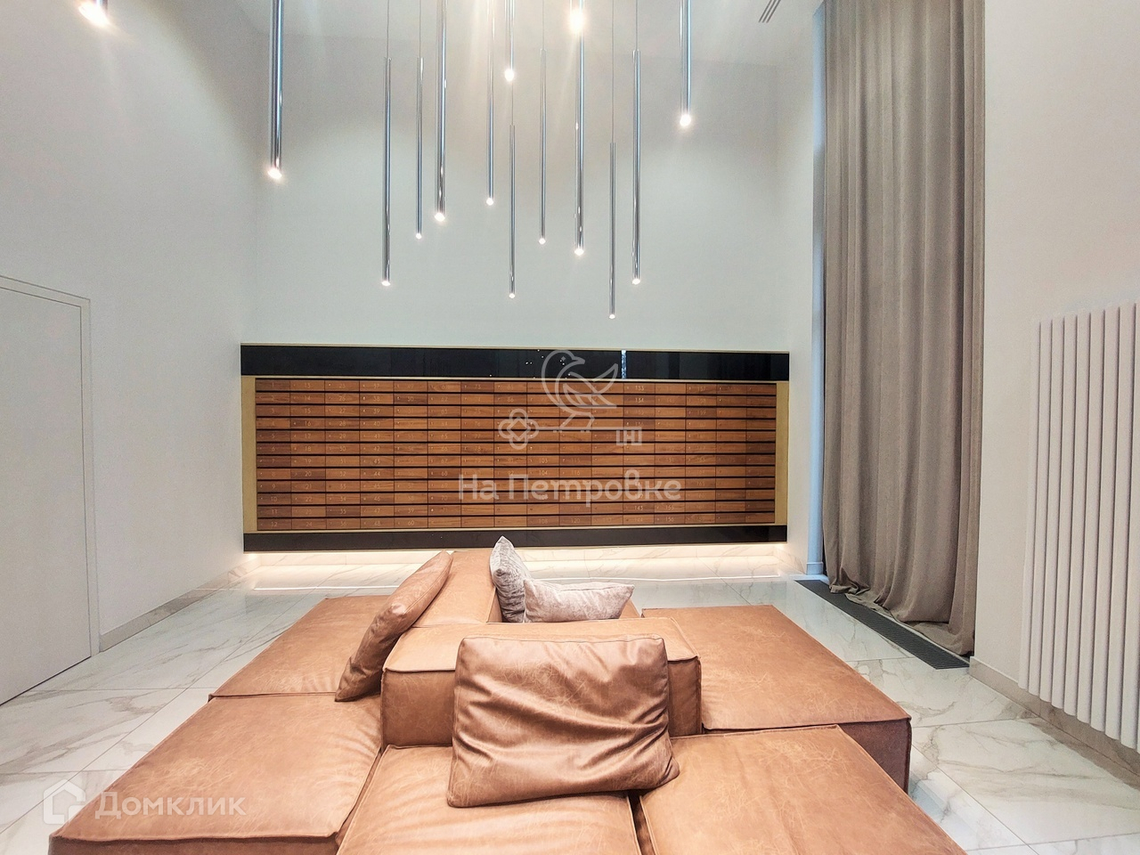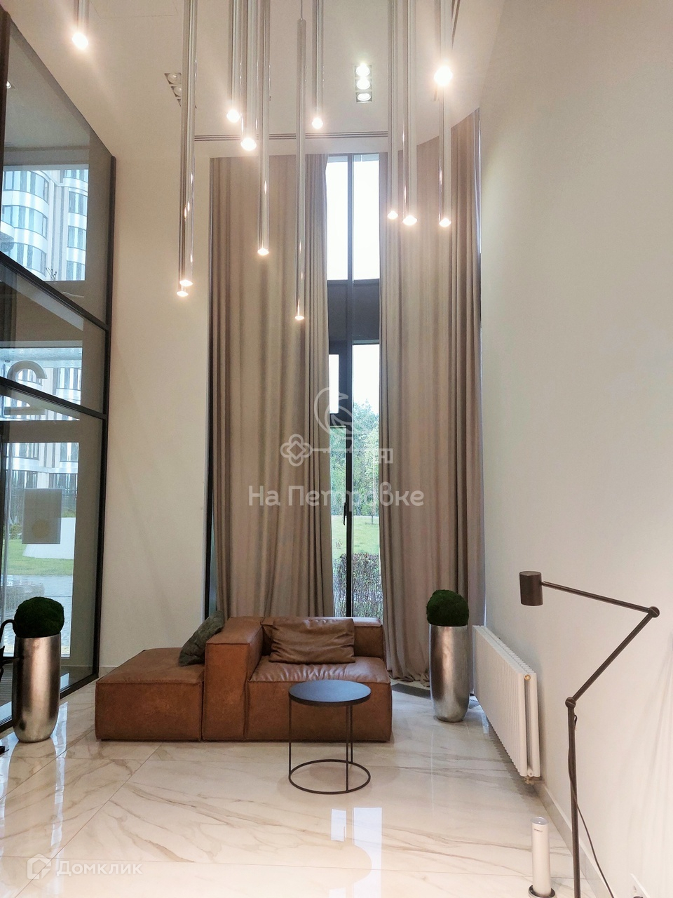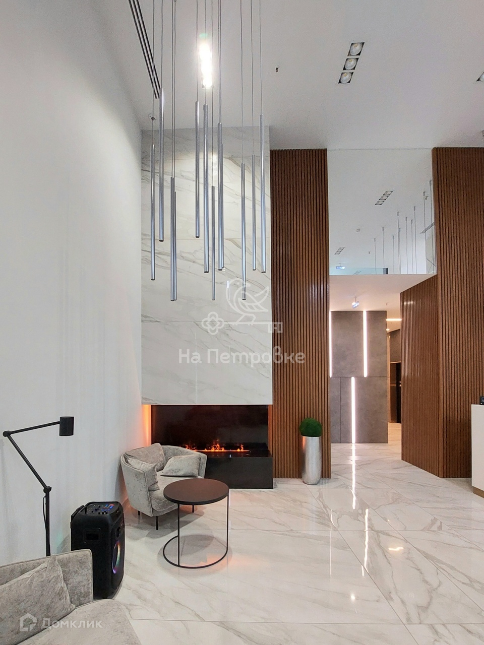 В апартаментах сделан качественный ремонт. Апартаменты полностью укомплектованы мебелью и бытовой техникой. На первом этаже расположены лобби с библиотекой, лаунж-зона. Круглосуточно работает консьерж.