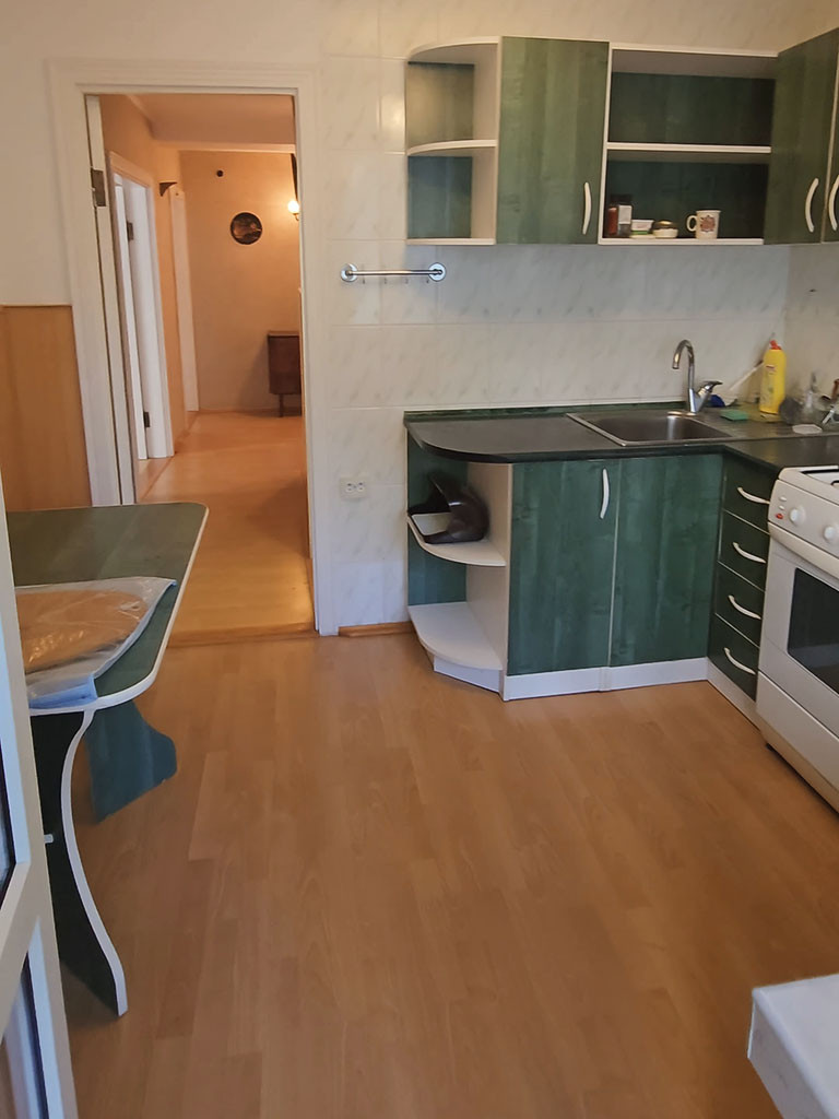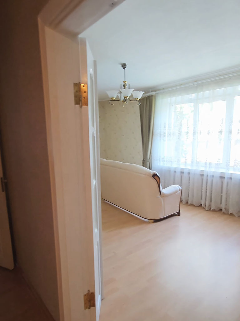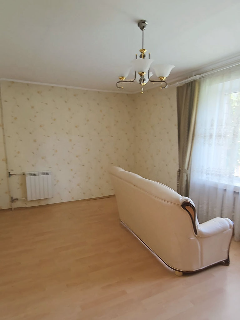 Квартира расположена на 2-м этаже в 8-ми этажном доме. Общая площадь – 62,10 кв.м. сделан хороший ремонт – ламинат на полу, на стенах обои, плитка на кухне и в с/у.  Из окон открывается вид на зеленый двор.